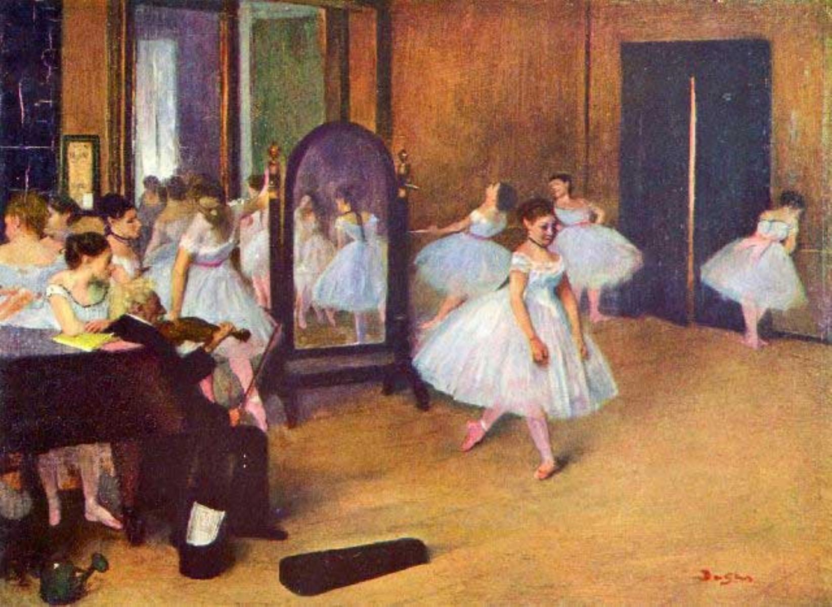Artist: Degas - Title: The Dance Hall - Medium: Fine Art Reproduction Giclee on Archival Canvas - Image Size: Approximately 14.5 inches x 20 inches - Framed: Unframed on Unstretched Canvas - Edgar Degas was a French artist famous for his work in painting, sculpture, printmaking and drawing. He is regarded as one of the founders of Impressionism although he rejected the term, and preferred to be called a realist. A superb draftsman, he is especially identified with the subject of the dance, and over half of his works depict dancers. These display his mastery in the depiction of movement, as do his racecourse subjects and female nudes. His portraits are notable for their psychological complexity and depiction of human isolation. - Early in his career, he wanted to be a history painter, a calling for which he was well prepared by his rigorous academic training and close study of classic art. In his early thirties, he changed course, and by bringing the traditional methods of a history painter to bear on contemporary subject matter, he became a classical painter of modern life.
