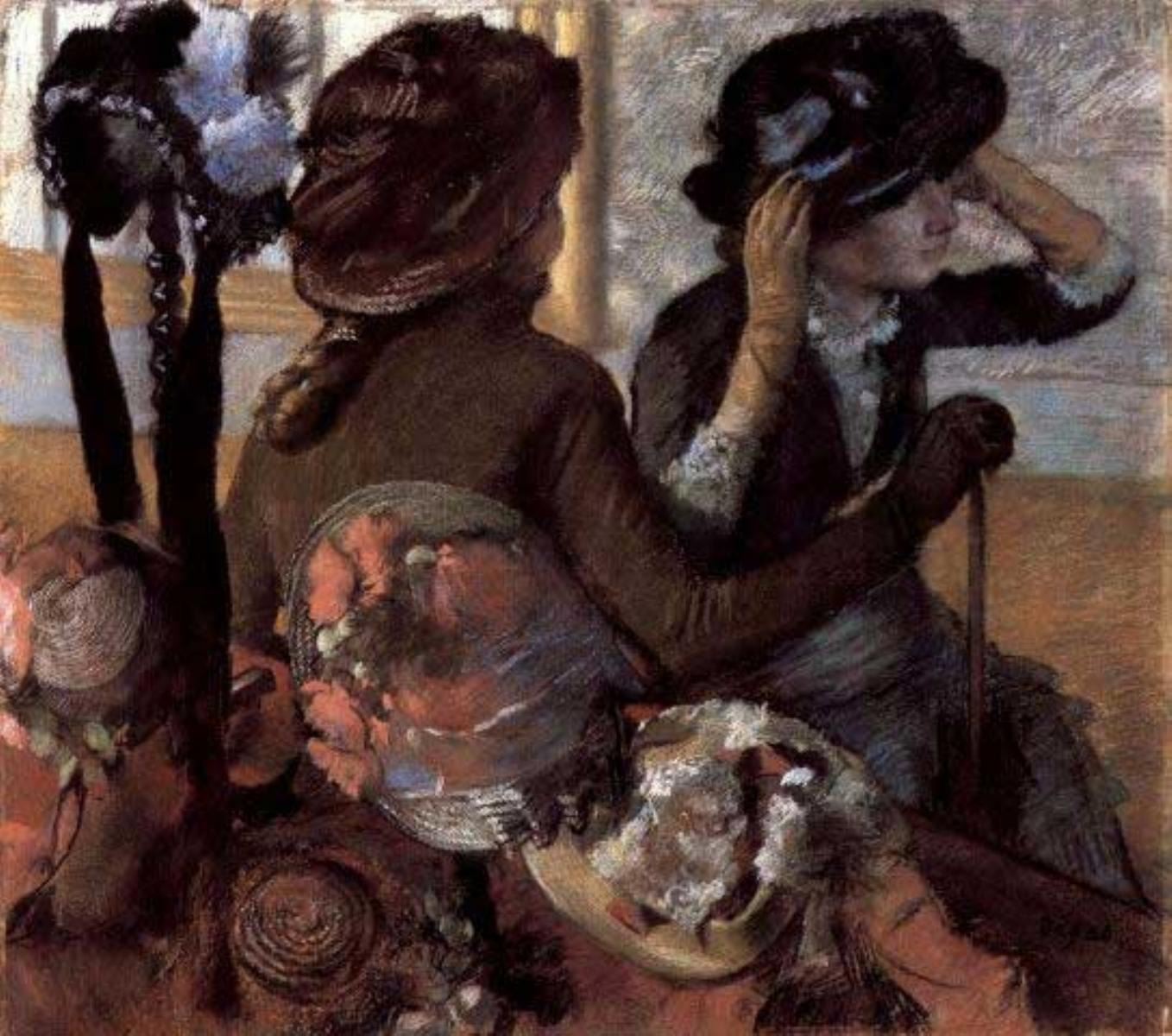Artist: Degas - Title: The Milliner #1 - Medium: Fine Art Reproduction Giclee on Archival Canvas - Image Size: Approximately 28.25 inches x 32 inches - Framed: Unframed on Unstretched Canvas - Edgar Degas was a French artist famous for his work in painting, sculpture, printmaking and drawing. He is regarded as one of the founders of Impressionism although he rejected the term, and preferred to be called a realist. A superb draftsman, he is especially identified with the subject of the dance, and over half of his works depict dancers. These display his mastery in the depiction of movement, as do his racecourse subjects and female nudes. His portraits are notable for their psychological complexity and depiction of human isolation. - Early in his career, he wanted to be a history painter, a calling for which he was well prepared by his rigorous academic training and close study of classic art. In his early thirties, he changed course, and by bringing the traditional methods of a history painter to bear on contemporary subject matter, he became a classical painter of modern life.