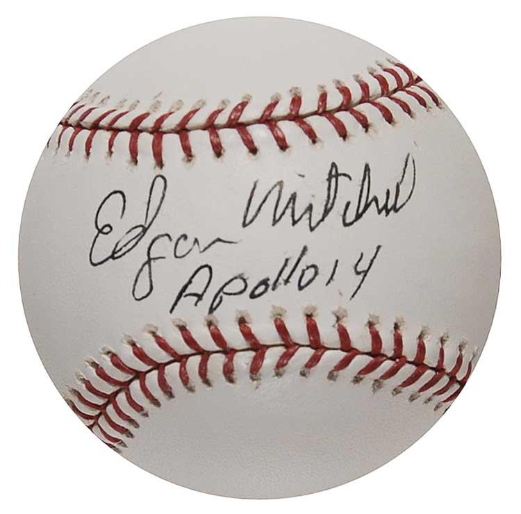 Official Rawlings Major League baseball signed in black ballpoint on the sweet spot, “Edgar Mitchell Apollo 14.” In very fine condition. Pre-certified Scott Cornish and RRAuction COA.