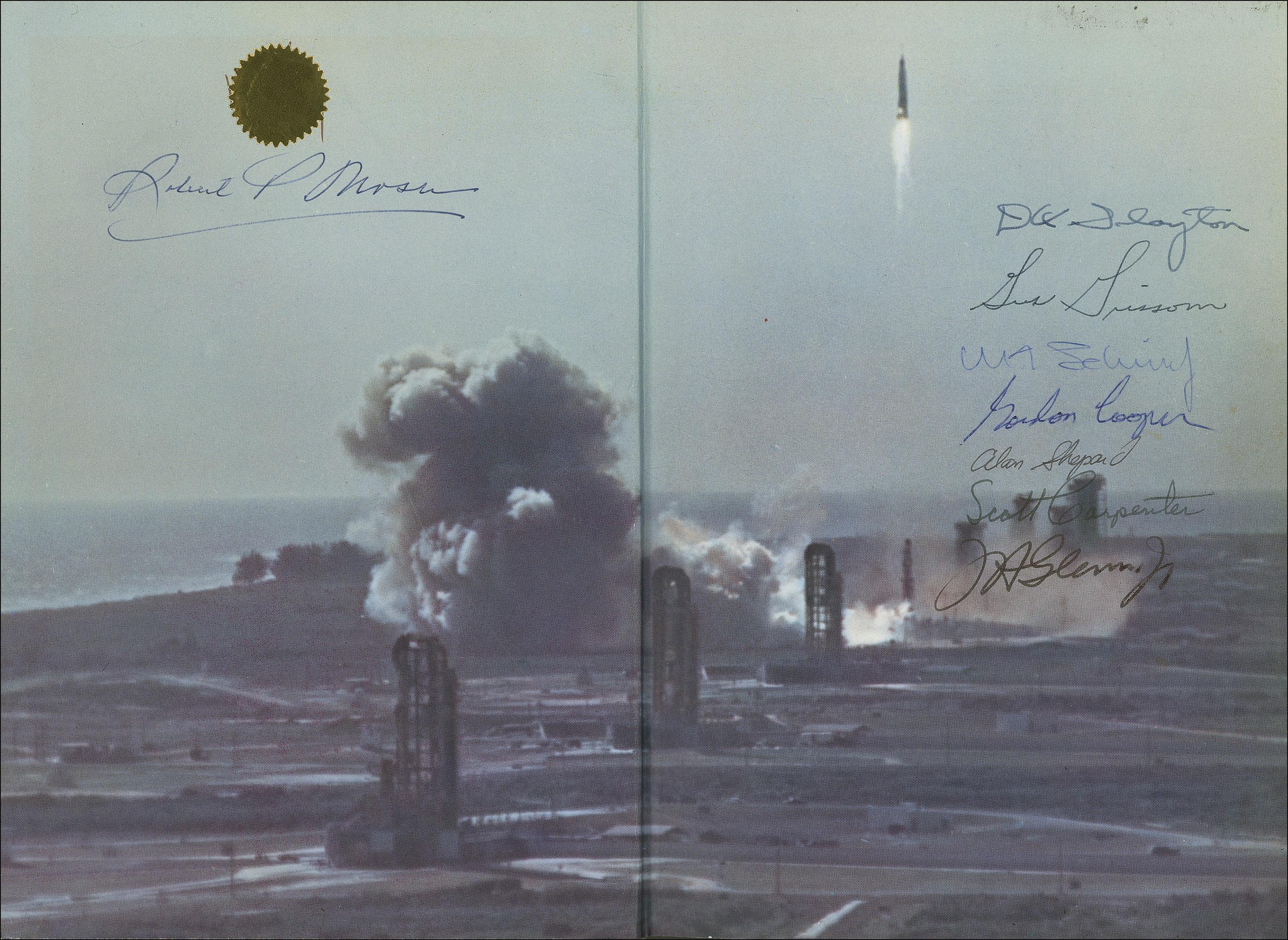 Apollo 14 insurance cover, 6.5 x 3.5, signed in ballpoint “Official crew cover from my personal collection, Edgar Mitchell.” The famous insurance covers, produced immediately prior to space missions in order to provide financial security for astronauts’ families in case of disaster, have earned near-legendary status as the ultimate space-related philatelic item and one of the most sought-after formats for astronaut autographs. A quantity of the Apollo 14 “insurance” covers, including the present example, were left unsigned by the crew during quarantine and were signed by Mitchell at a later date. Removably presented on a color 8.5 x 11 informational sheet. In very fine condition. Pre-certified Scott Cornish and RRAuction COA.