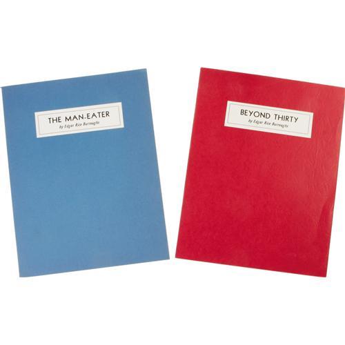<B>Edgar Rice Burroughs: <I>Beyond Thirty</B></I></B></I> <B>and</B></I> <B><I>The Man-Eater</B></I></B></I> <B>Unauthorized Eshbach Publications.</B></I> (Np, nd), staplebound in wrappers (red & blue respectively), <I>Beyond Thirty</B></I>: 57 pages, <I>The Man-Eater</B></I>: 50 pages, each approximately 8.5" x 11". These two stories were published anonymously by Lloyd Eshbach at Fantasy Press, and supposedly given free of charge to Burroughs collectors. Eshbach, in fact, sold some of the 300 hectographed copies, but did not put the Fantasy Press imprint or his name on them because he was not sure of the copyright situation of either story. He simply wanted the stories read, as they were two of his favorite Burroughs tales, and long out of print. Almost simultaneously, having discovered that the two stories were public domain, Bradford Day at Science Fiction and Fantasy Publishers issued them in hardcover. The two copies here are in fine condition. One corner on each cover is slightly bent, the only flaw in these two rare pieces of science fiction publishing history. <I>From the Ventura Collection.</B></I><BR><BR><b>Shipping:</b> Books & Catalogs (<a target="_blank" href="http://www.heritageauctions.com/common/shipping.php">view shipping information</a>)