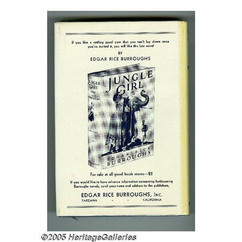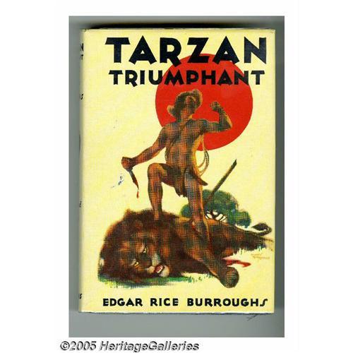 <B>Edgar Rice Burroughs - ""Tarzan Triumphant,"" First Edition (Burroughs, 1932).</B></I> The frontispiece and four full-page illustrations for the seventeenth novel in the Tarzan series were rendered by Studley Burroughs. This lot features an Excellent condition book with an Excellent condition dust jacket. A previous owner's name has been written on title page, and rather incredibly it reads, ""Herbert C. Hoover, Superior, Wis., June 10, 1934!"" <BR><BR><B>Important notice:</B> Heritage usually auctions material at the rate of 200-250 lots per hour. On some occasions eBay Live bid software or the Internet may not be able to keep up with the pace of the auction. We recommend placing a realistic absentee bid now as insurance to avoid disappointment. Occasionally the auctioneer may eliminate or reject an eBay Live bid, and the auctioneer may also reopen a lot after the close of the eBay live bidding (usually because we missed an audience bid), and may reject your bid even if it shows you as the winning bidder. By bidding via eBay Live, you agree that Heritage may award the lot to another bidder at its sole discretion under the circumstances described above or any other reasonable circumstances. Since eBay bids are not shown to us until we open the lot on the floor, we treat those bids just like floor bids. In most cases the floor responds before the eBay bid is presented to us, due to Internet lag time, so for consistency we have made it a policy that floor bids are always considered first over tie eBay live bids. Also please note that all Heritage lots purchased through eBay Live carry a 20% Buyer's Premium. Please make sure you read the Terms and Conditions before you bid. This lot is being auctioned in conjunction with a live floor auction by Heritage Galleries & Auctioneers. All final auction and invoice information will be supplied by Heritage Galleries & Auctioneers, and all other information should be considered preliminary. Lot:3478 <BR><BR><B>Winning Notific