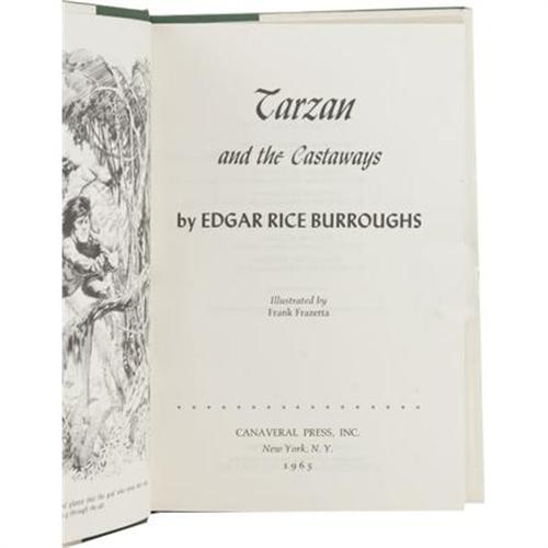 <B>Edgar Rice Burroughs:<I> Tarzan and the Castaways.</B></I></B></I> (New York: Canaveral Press, Inc., 1965), first edition, 229 pages, illustrated by Frank Frazetta, green cloth with black titles, 8vo (5.75 x 8.25), near fine in a near fine unclipped jacket. <BR><BR><b>Shipping:</b> Books & Catalogs (<a target="_blank" href="http://www.heritageauctions.com/common/shipping.php">view shipping information</a>)