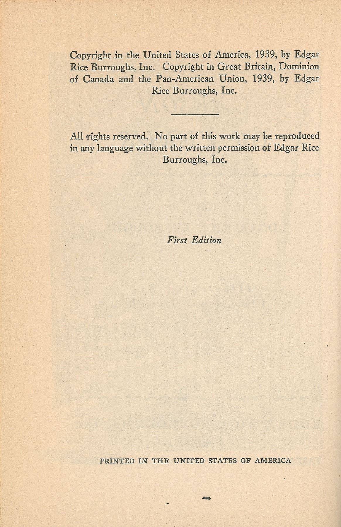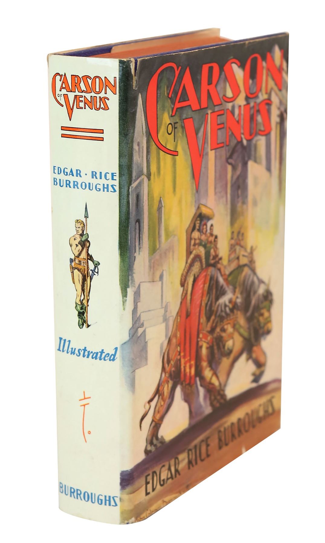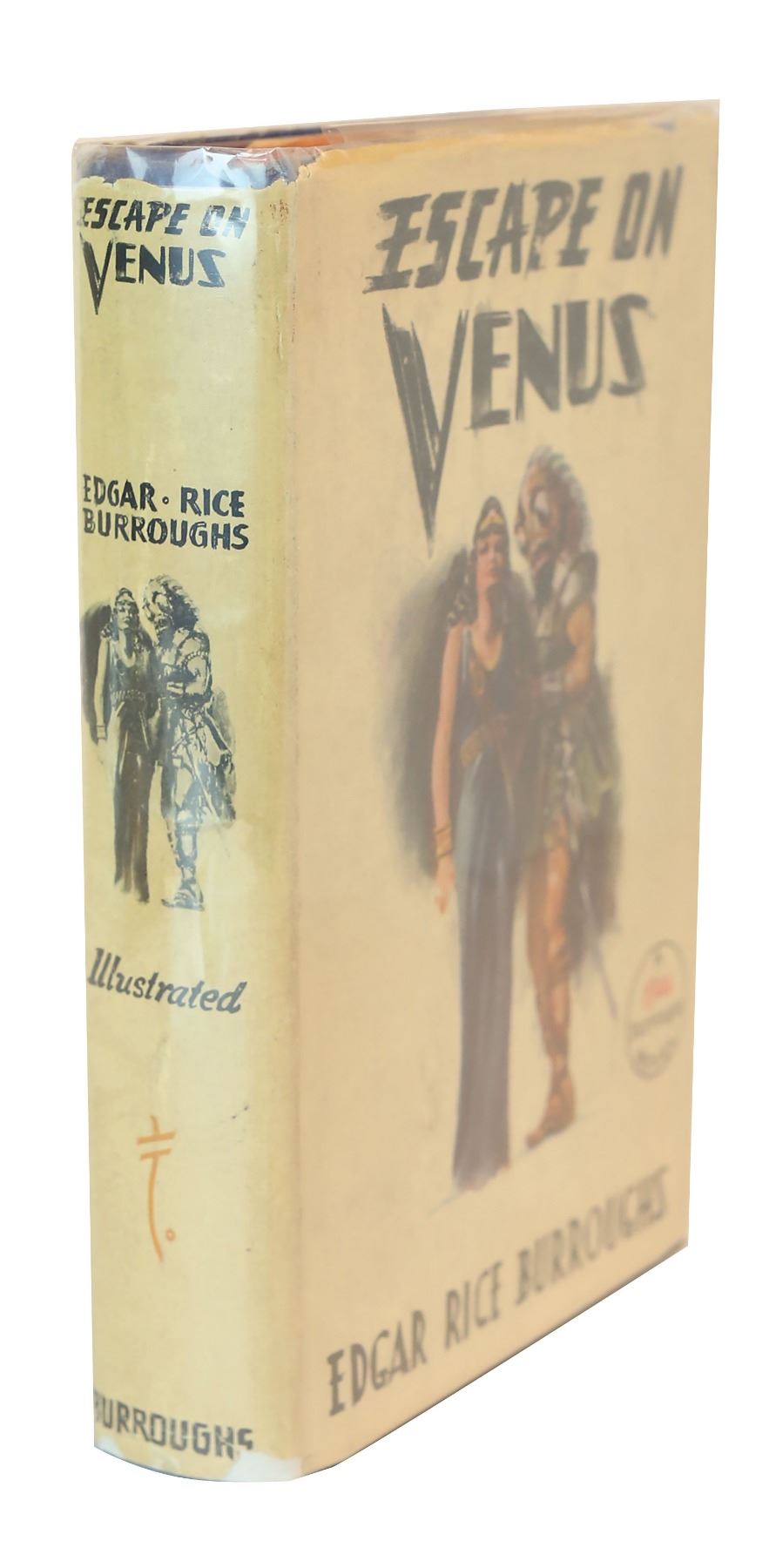 Two unsigned first edition books: Carson on Venus, hardcover with dust jacket, published by Edgar Rice Burroughs, Inc. in 1939; and Escape on Venus, hardcover with dust jacket, published by Edgar Rice Burroughs, Inc. in 1946. Overall book condition: VG/VG, with some minor tears and creasing to dust jackets.