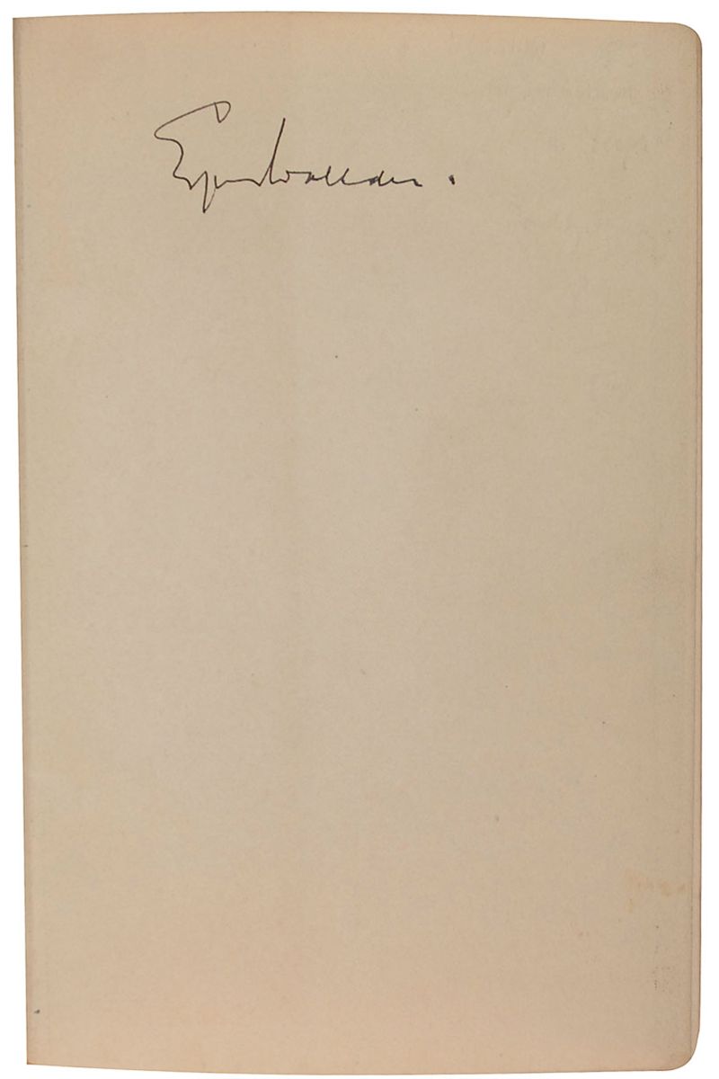 British novelist, playwright, and journalist (1875–1932) who produced popular detective and suspense stories. Signed book: Edgar Wallace: A Short Autobiography. Popular edition. London: Hodder and Stoughton. Hardcover with dust jacket, 5.25 x 7.5, 253 pages. Signed on the first free end page in black ink. In very good condition, with a light block of toning to the first free end page (slightly affecting his first name), and overall wear and some paper loss to dust jacket.