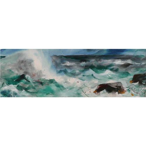 Edgar Whitney, (1891-1987) Watercolor, Seascape, 7 1/2" x 22 1/4", Signed lower right.