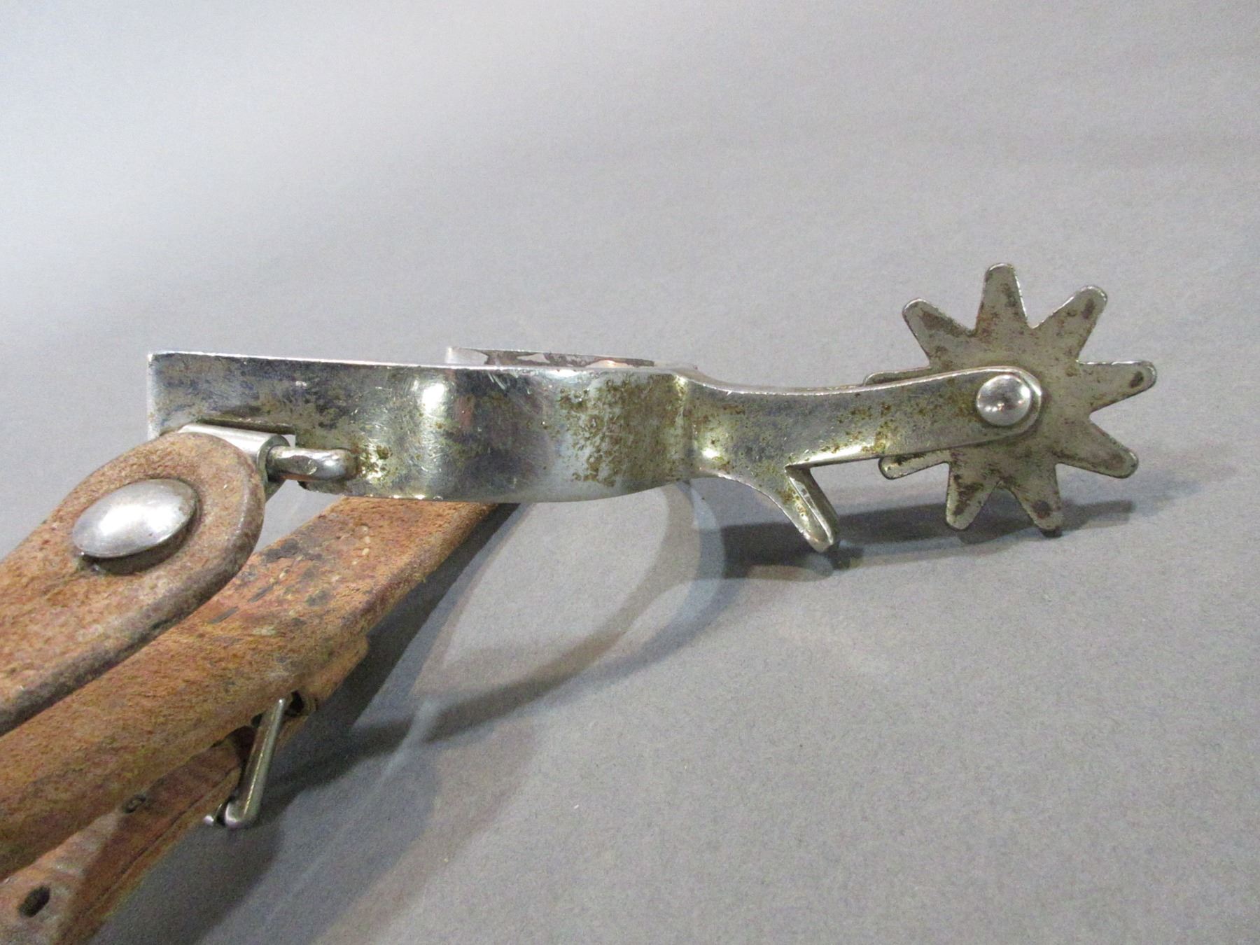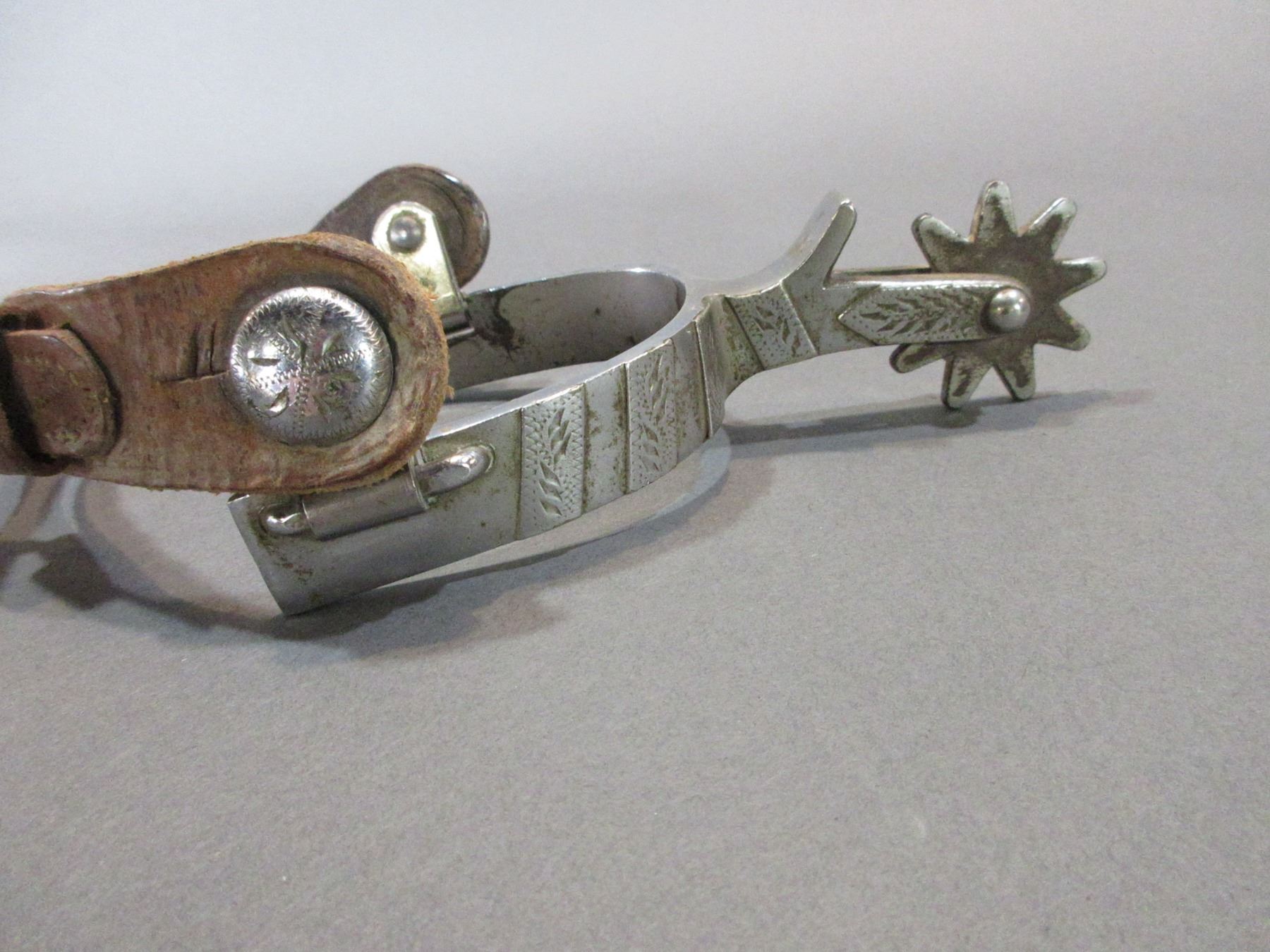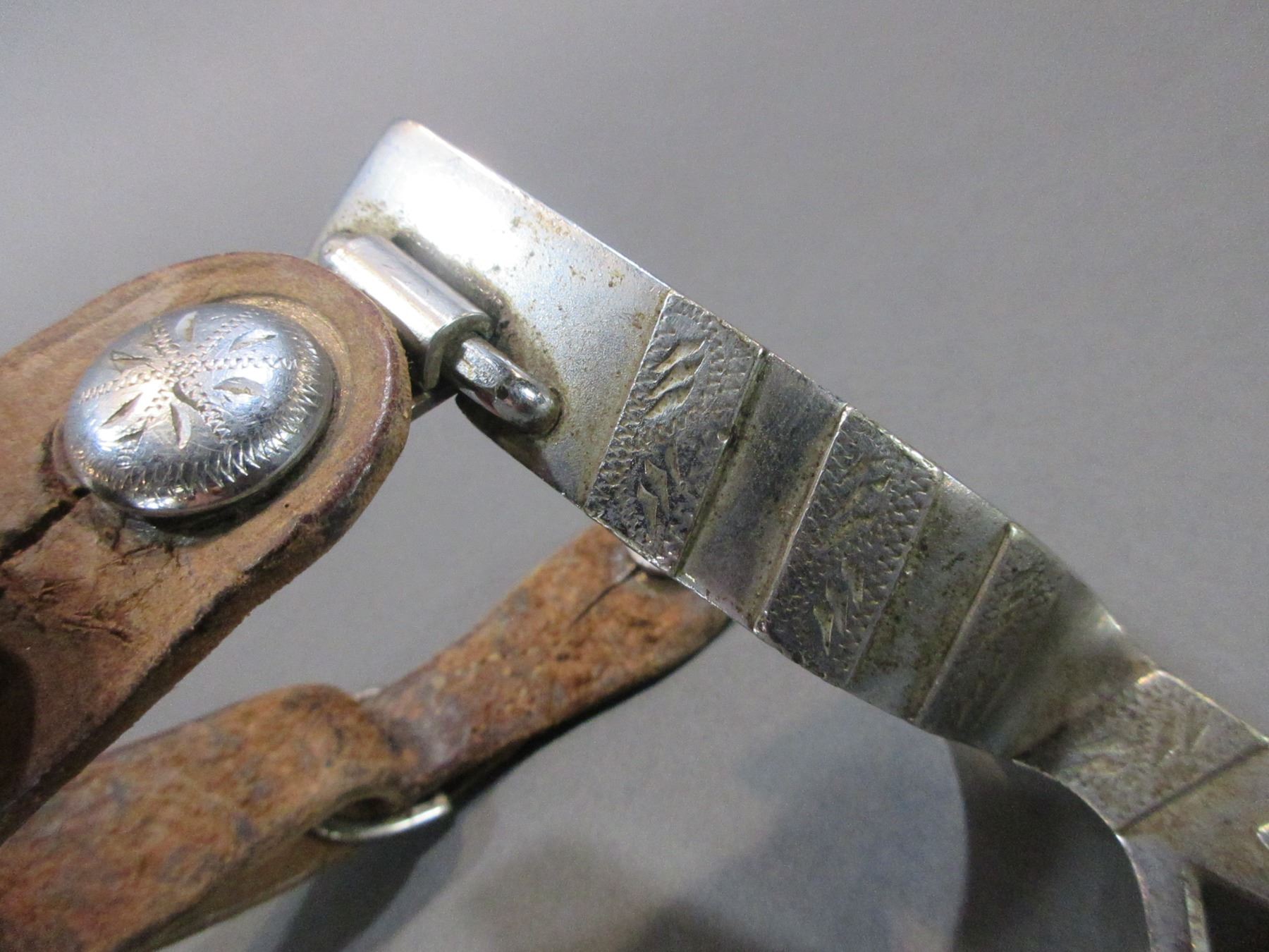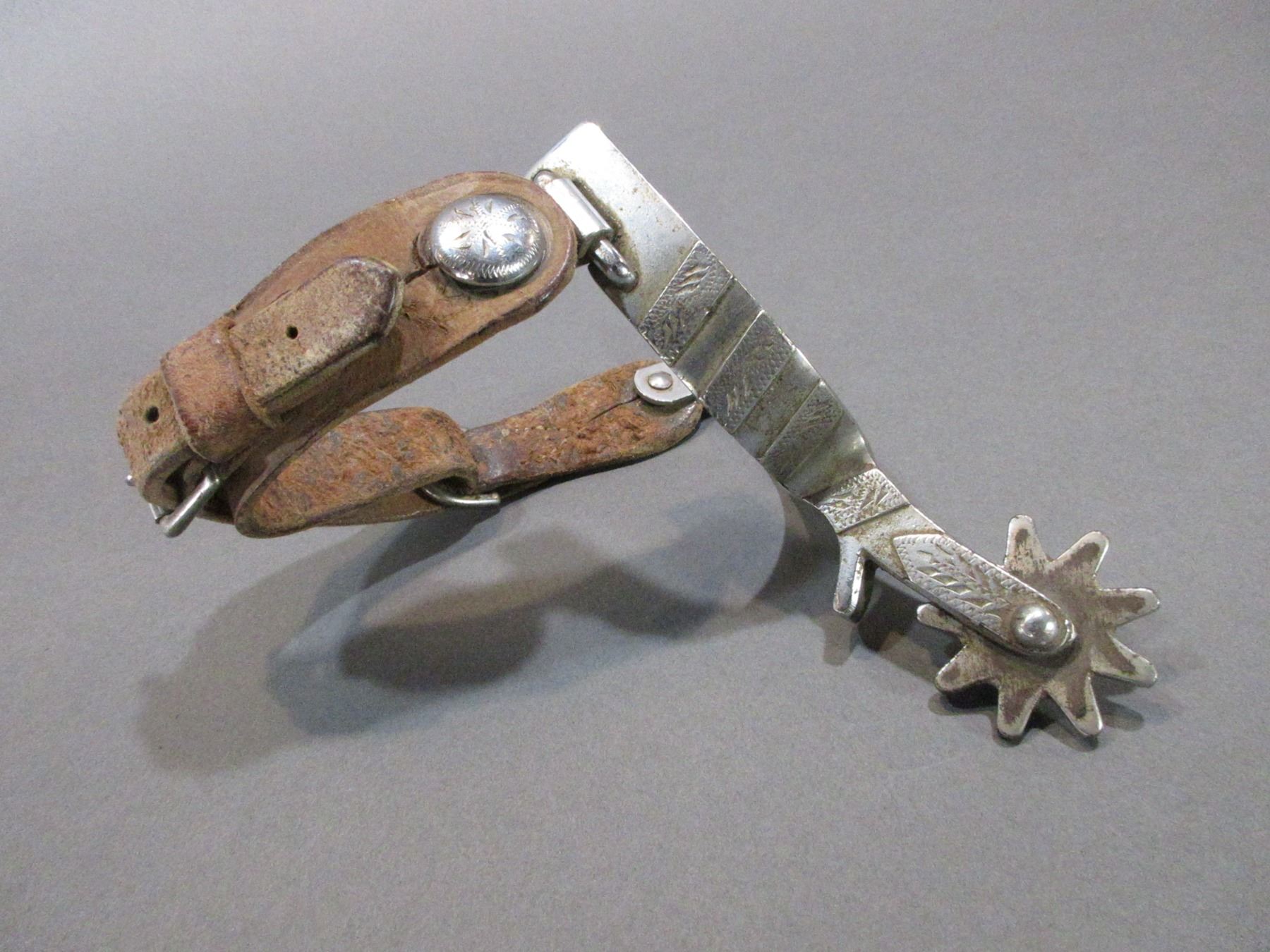 Edge Marked Crockett Overlaid Spurs- .8" Bands- 2.25" Shanks- 9 Point Rowels- Straps- Chap Guards