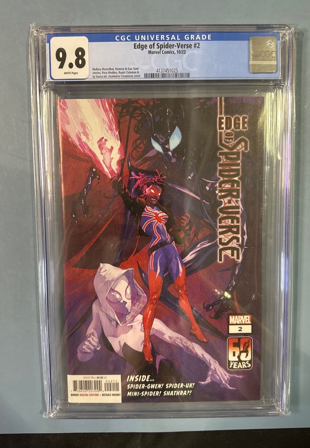 Condition: Professionally graded by CGC at 9.8 (Near Mint/Mint) and encapsulated. The protective case is intact and clear, preserving the comic's condition. The comic itself has white pages. SKU: HB-20250991130-38-J-250909-12