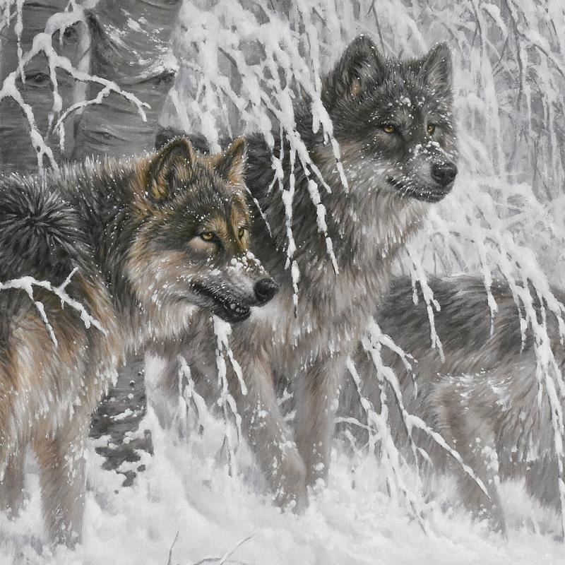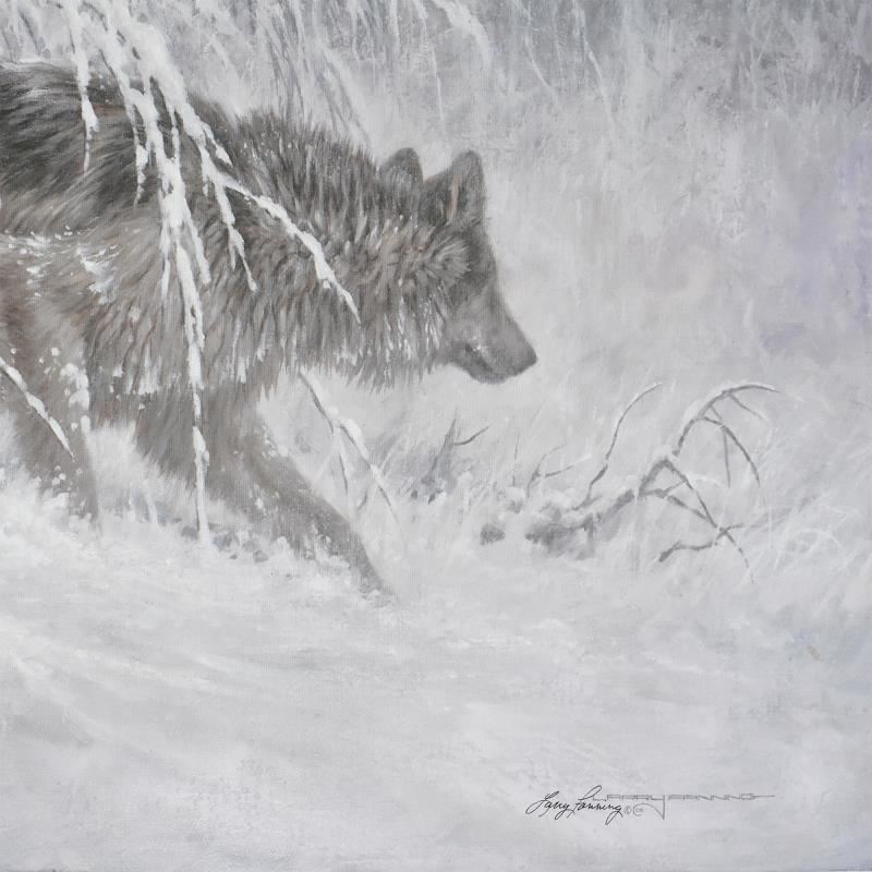 "Edge of Winter (Gray Wolves)" is a limited edition giclee on canvas by Larry Fanning (1938-2014), AP numbered and hand signed by the artist. Includes Letter of Authenticity. Measures approx. 45.5" x 29.5" (image).