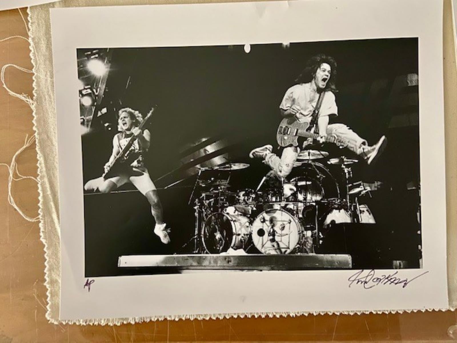 Edie Van Halen really can jump, as proved by this black & white action photo captured by famed photographer Robert Knight. Signed & numbered.