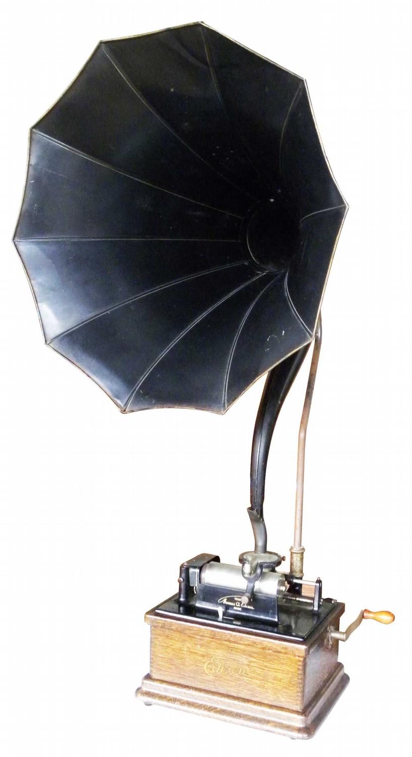 Edison Fireside Phonograph, Model A #2839. 2 & 4 minute cylinder play. Original metal signet horn. 18 inch diameter with cover.