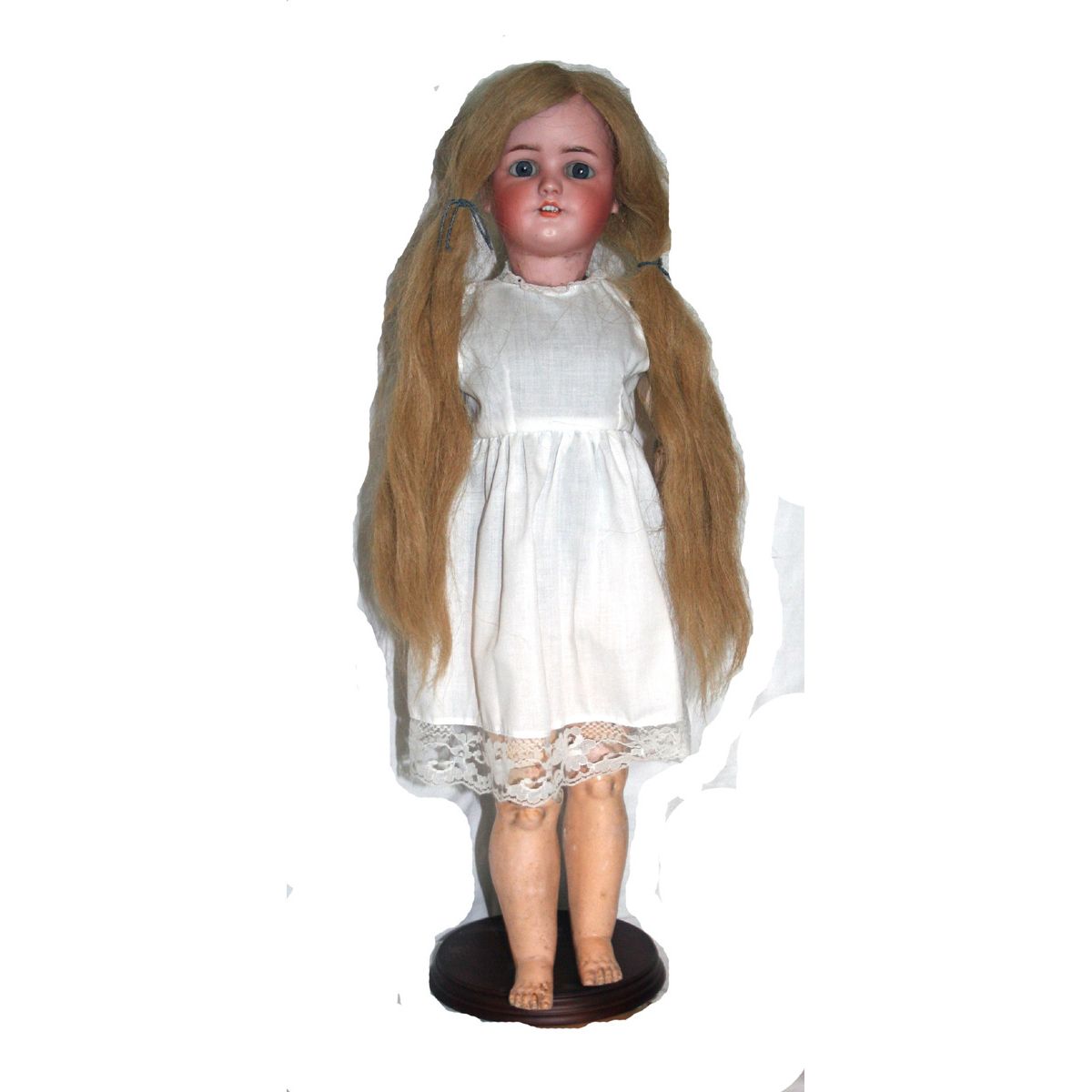 Edison Phonograph Doll - Metal body houses phono mechanism. Jointed arms and legs. Beautiful porcelain face. Paper weight eyes. Needs to be restrung. A very rare find. Approx. 23" L.