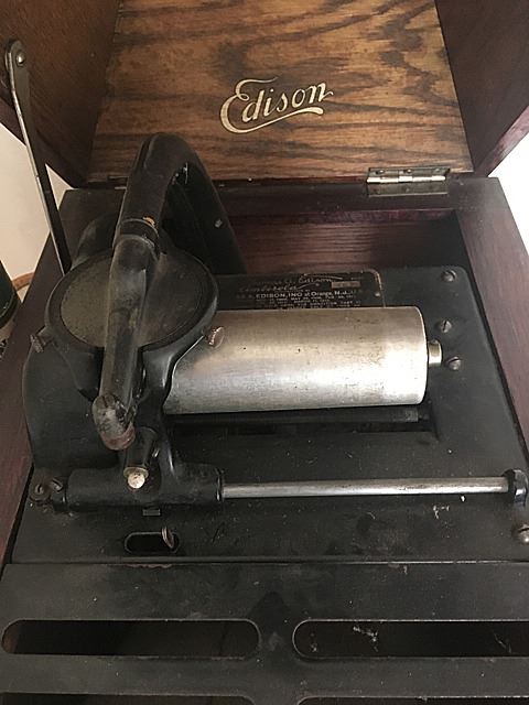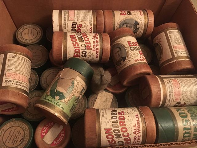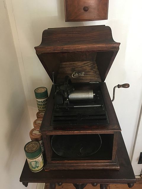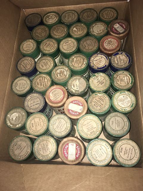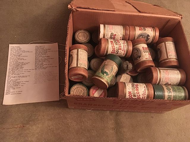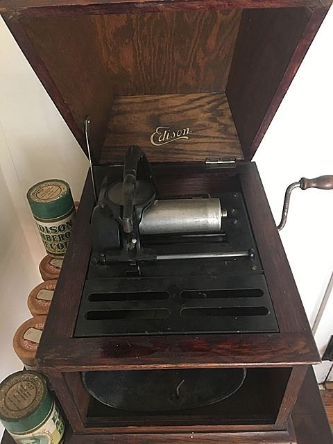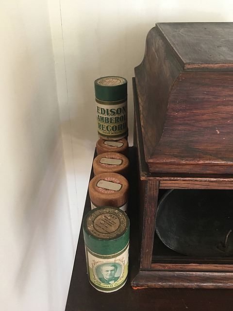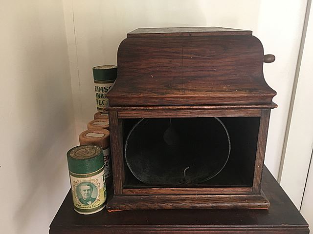 Oak Edison Phonograph with cylinders (approx. 70+ cylinders in collection).