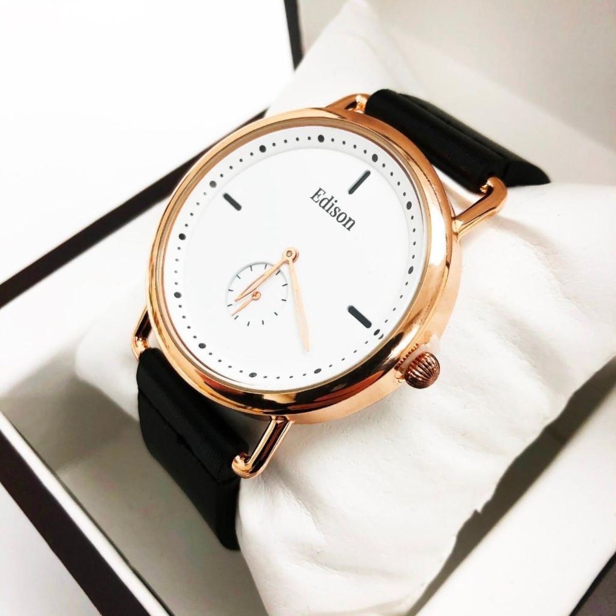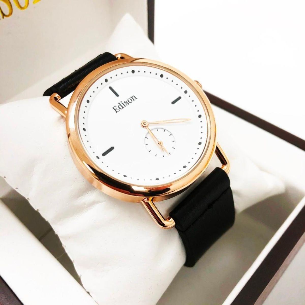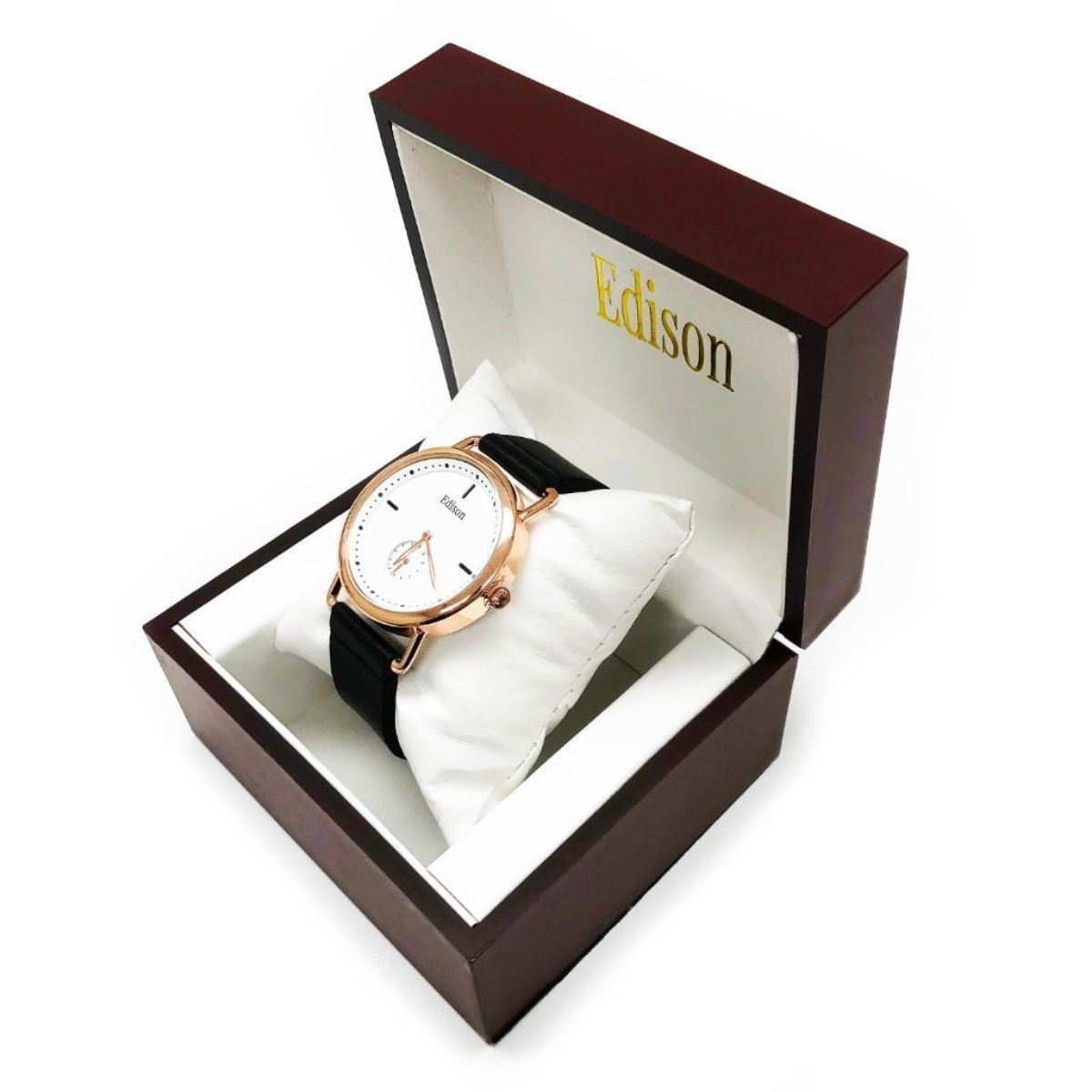 Edison Rose Gold Gloss Finish & Genuine Leather Band Watch