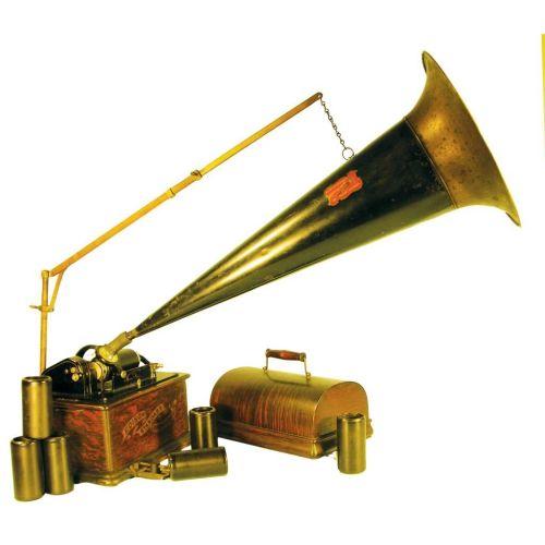 Edison Standard phonograph, hand wind victrola. Comes with 34 rolls. Original excellent condition. Case measures 12 X 8 1/2 X 6 inches.