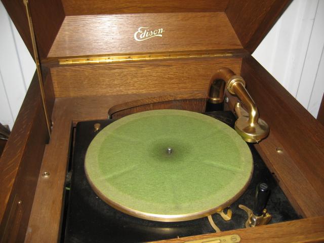 Edison Floor model record player with Brass head. very nice condition is a very nice display piece.