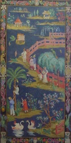 Edith Catlin Phelps (1875-1961) Californian ASIAN NARRATIVE, oil painting on board, 72 x 36", signed lower right, framed, minor surface soiling.