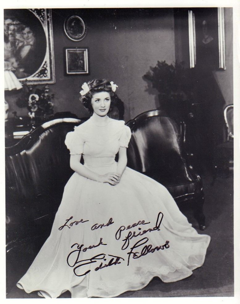 Black and white 8x10 photo signed by Edith Fellows. Photo is in good condition with no tears or creases. This item comes with a certificate of authenticity from Piece of the Past that is good for the life of the piece.