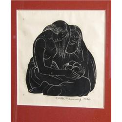 Edith Manning (20th Century) Mother and Child; Two Girls with a Baby; Girls in the Waves; and At the Fair all signed in pencil lower right "Edith Manning 1930" woodblock each 12 x 9cm (4) £60-100