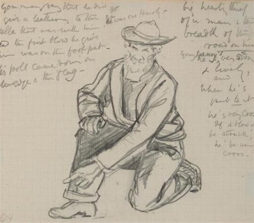SKETCHES FOR ALL ON THE IRISH SHORE and four others (SET OF FIVE) all five with studio stamp lower left; four variously inscribed and one dated [September 1907] lower right pencil on ruled graph paper <BR>20 by 17cm., 8 by 6.5in. Includes a sketch of a h