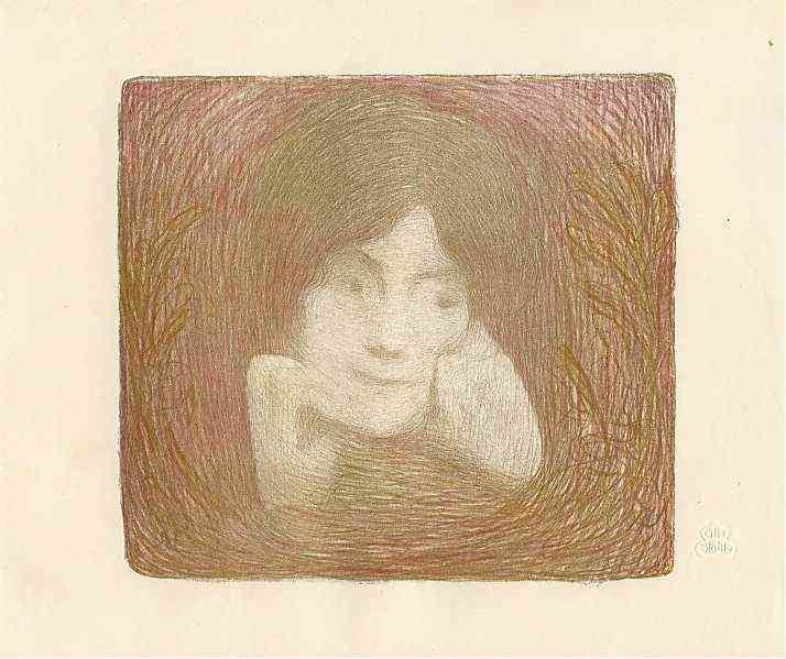 Edmond Aman-Jean Symbolist Lithograph, 1896 - Medium: Lithograph . Published In London In 1896 For The Scarce Volume 8 Of "The Studio". Printed On Smooth Wove Paper With The Studio Blindstamp In The Margin. Image Size 5 3/4 X 6 1/4 Inches (145 X 160 Mm). - Professionally Framed & Matted - Comes With Certificate - -