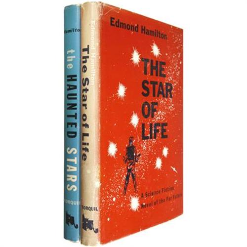 <B>Edmond Hamilton: Two First Editions.</B></I> Includes the following:<B><I><BR>The Star of Life.</B></I></B></I> (New York: Dodd, Mead & Company, 1959), first edition, 192 pages, grey boards, 8vo, dust jacket. Condition (book/ dj): very good/ very good.<BR><B><I>The Haunted Stars.</B></I></B></I> (New York: Dodd, Mead & Company, 1960), first edition, 192 pages, blue boards, 8vo, dust jacket. Condition (book/ dj): very good/ very good.<BR><BR><b>Shipping:</b> Books & Catalogs (<a target="_blank" href="http://www.heritageauctions.com/common/shipping.php">view shipping information</a>)