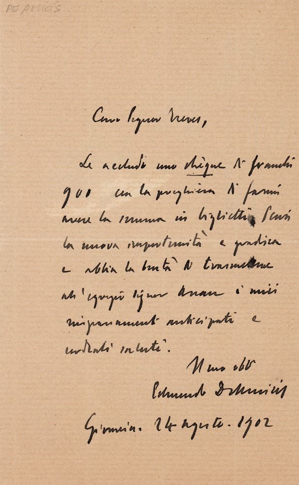 ALS in Italian, one page, 4.25 x 7, August 24, 1902. Untranslated handwritten letter by the Italian writer. In fine condition.
