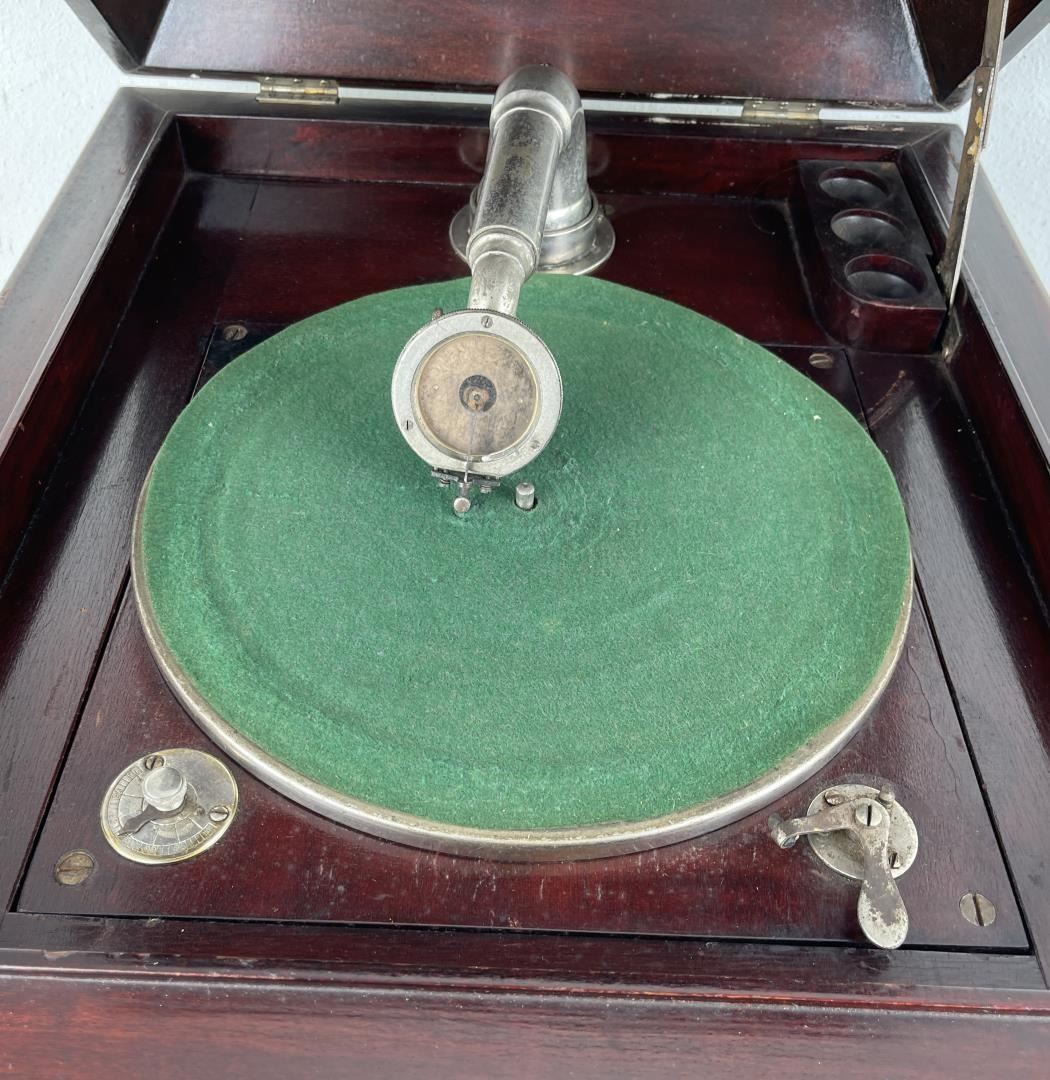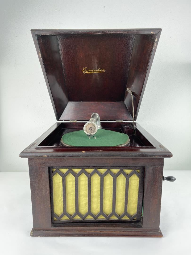 Fairly scarce machine. Made for only a short period of time. Working order. Edmondson Phonograph Company, 16-18 Washington Avenue, Irvington, New Jersey.