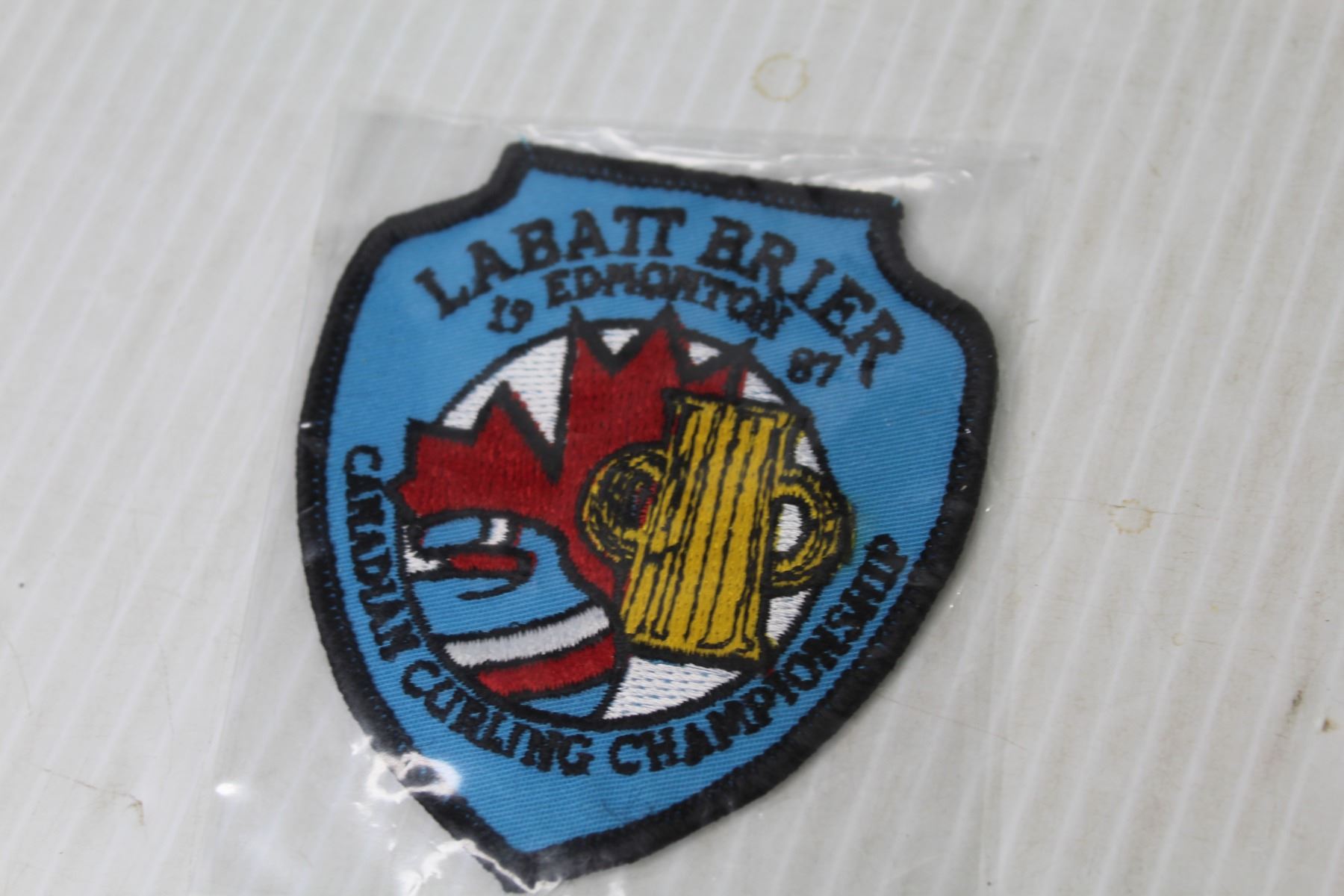 Edmonton Klondike Days Labatt Brier - Lot of (4) Embroidered Crests Plus a Labatt Brier Metal Button