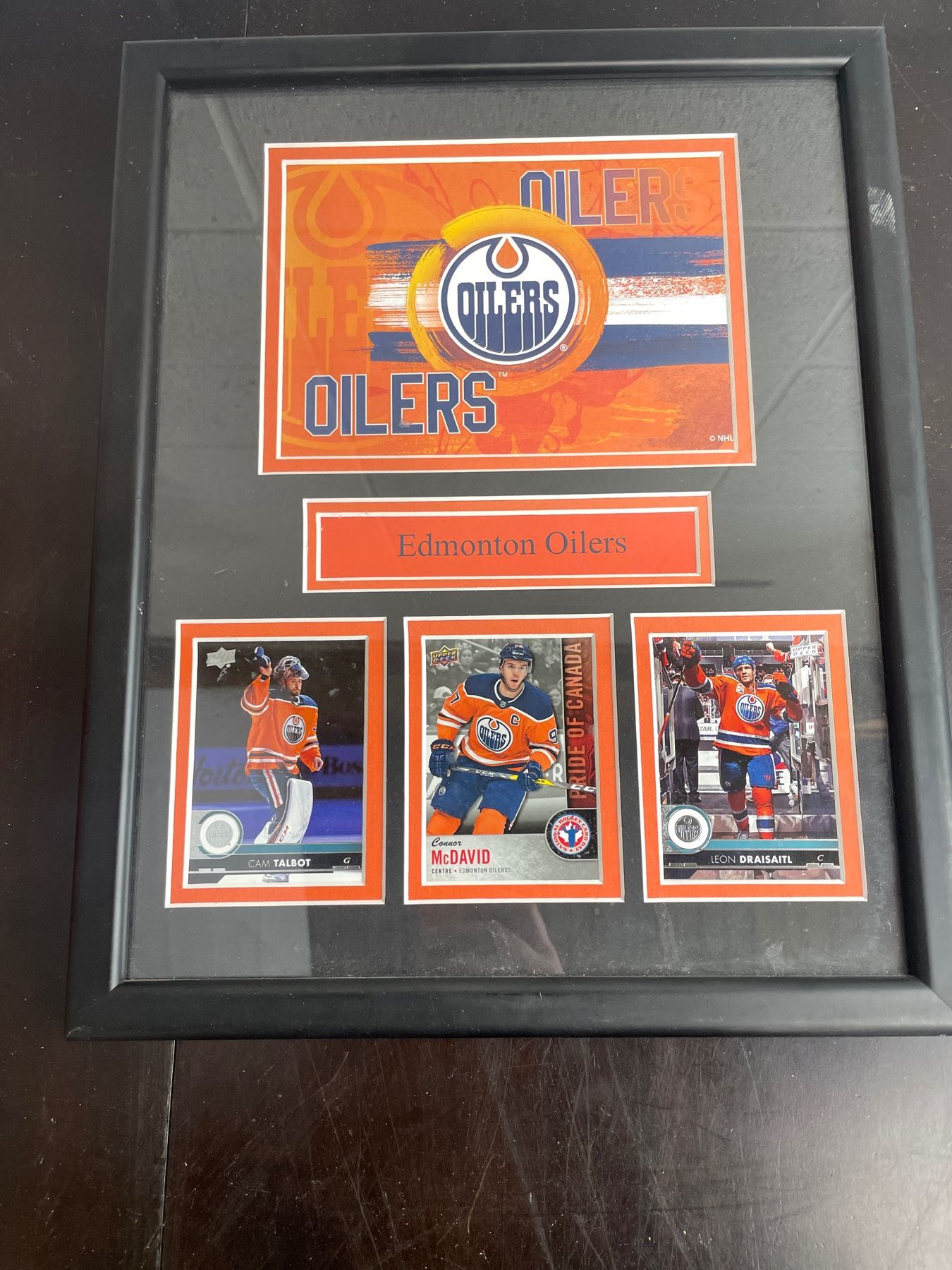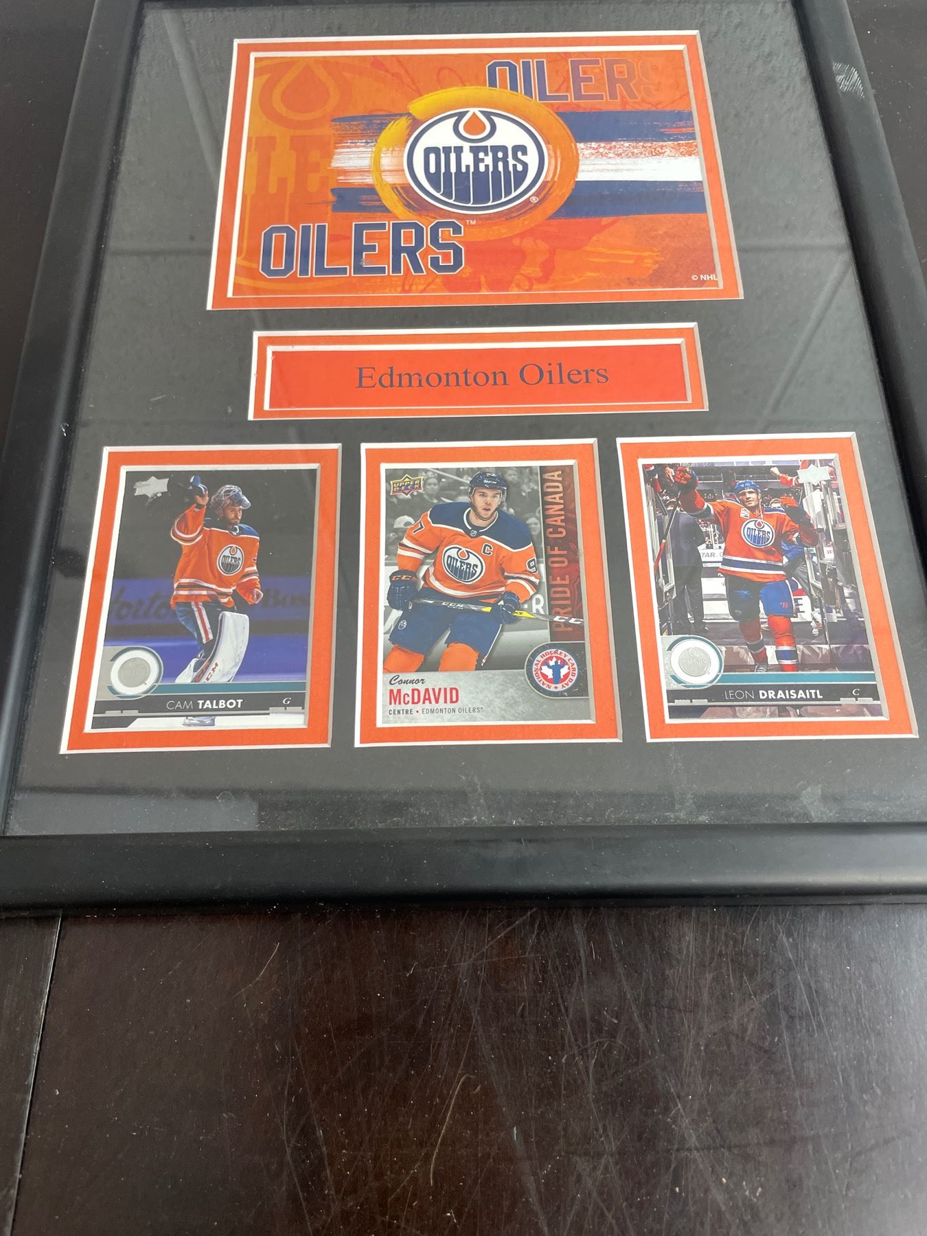 Framed Cam Talbot - Connor McDavid - Leon Draisaitl cards - framed 12" x 15"