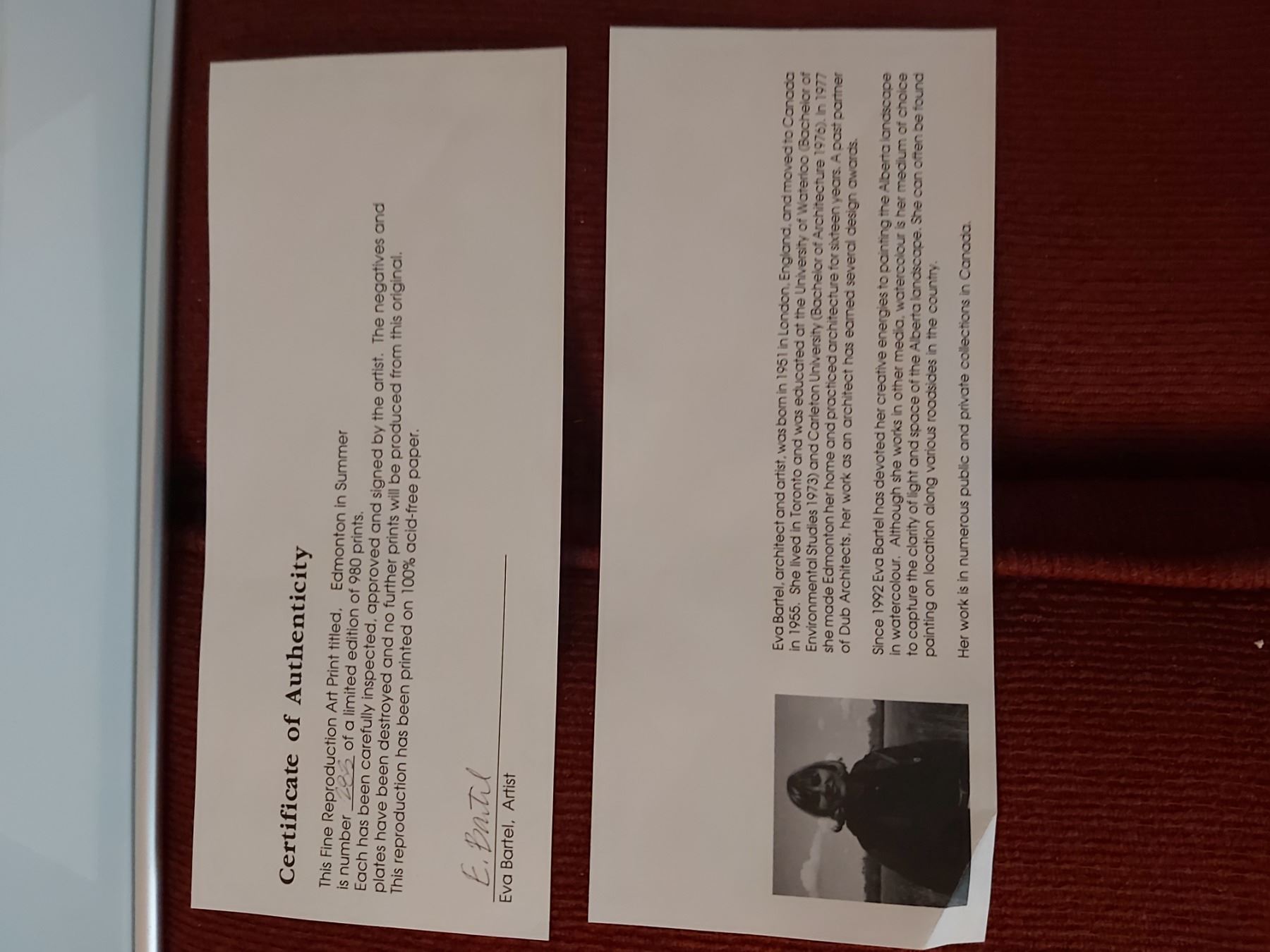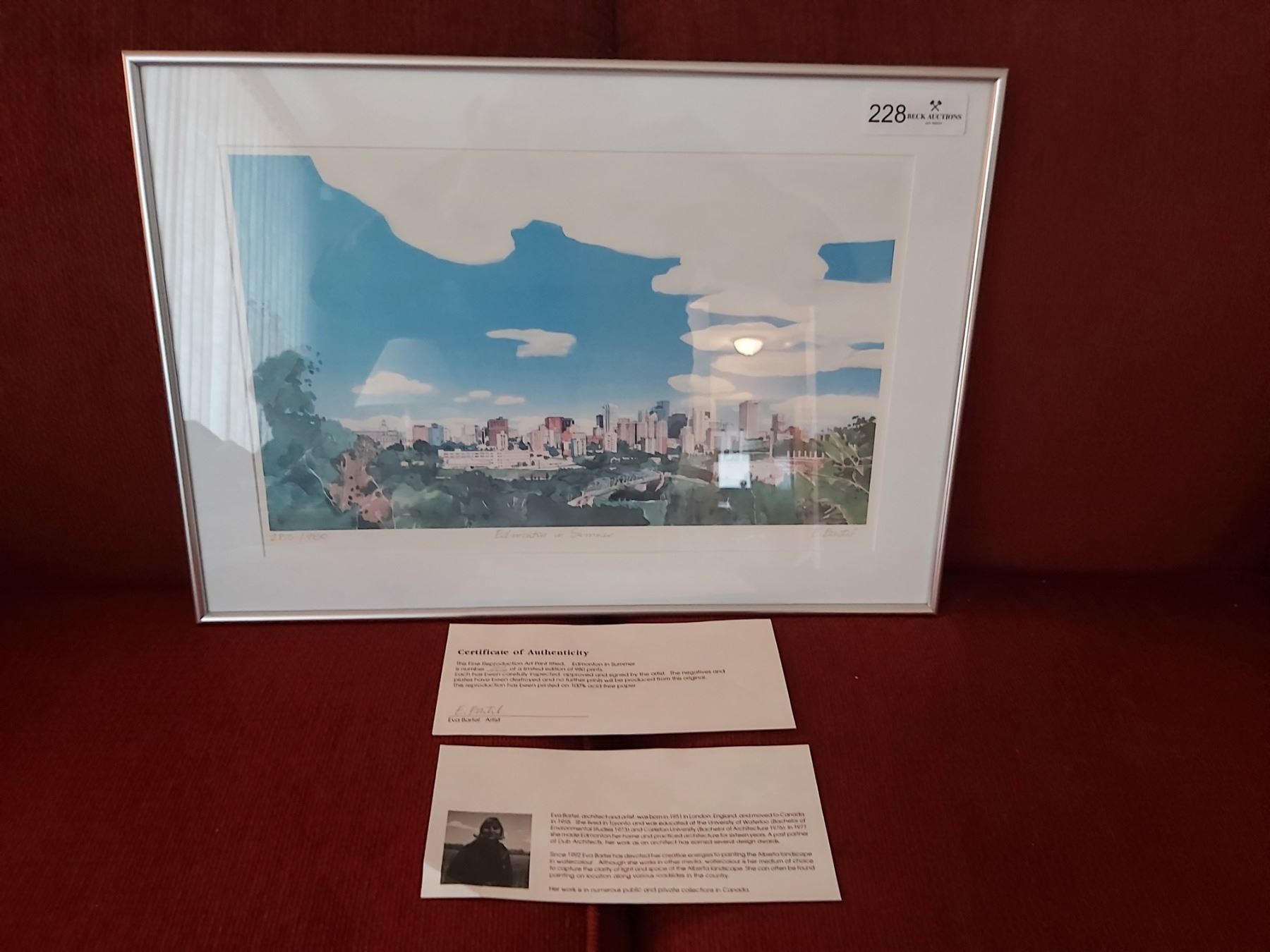 Edmonton in Summer Print Artist Eva Bartel 21 1/2 wide x 15 1/4 High # 283/980. Certificate of Authenticity included