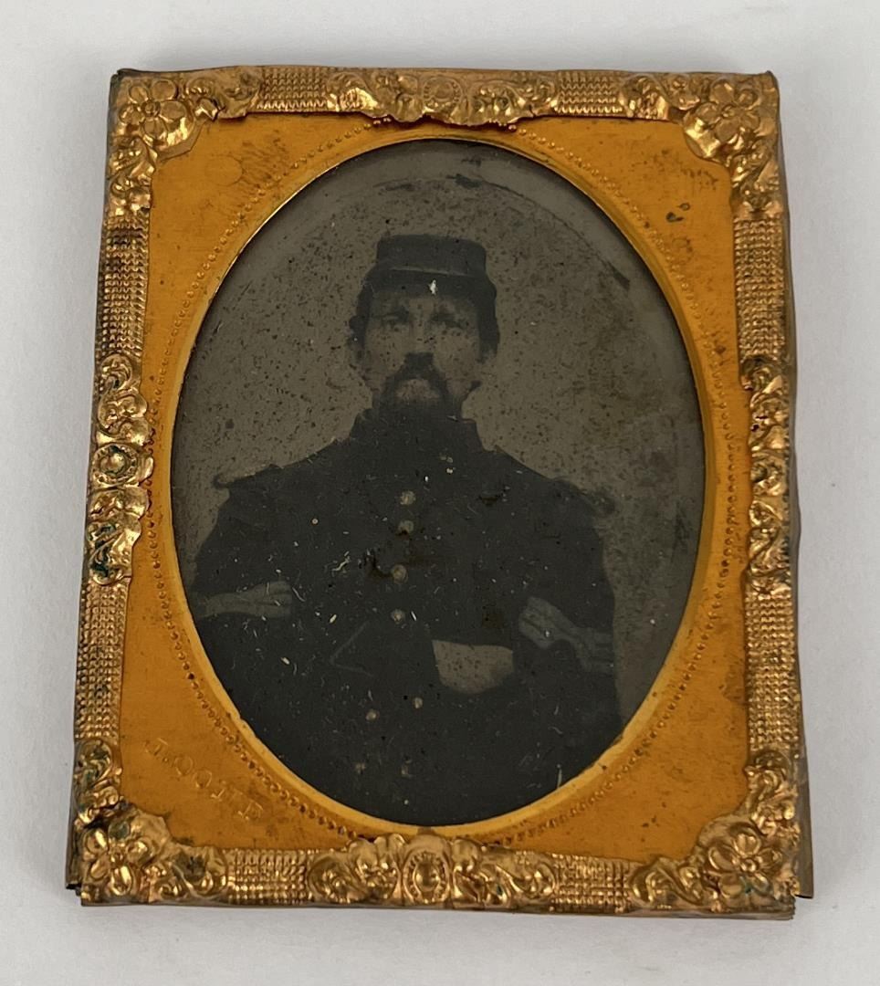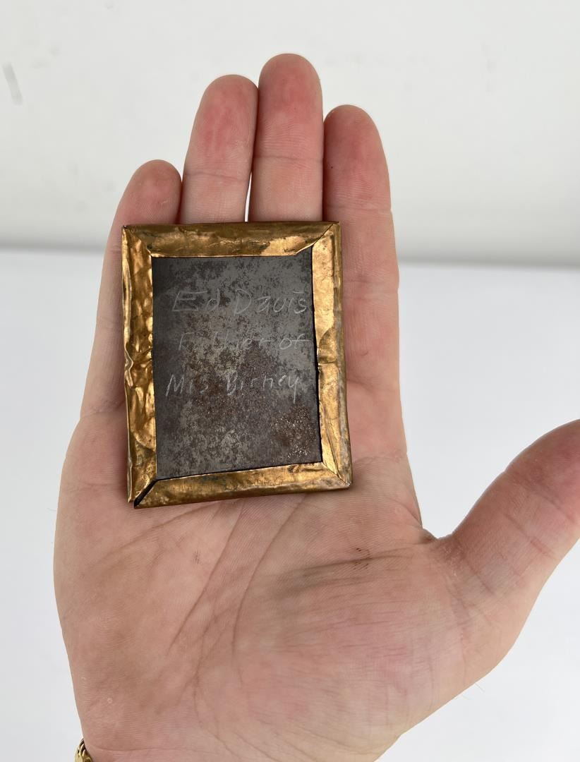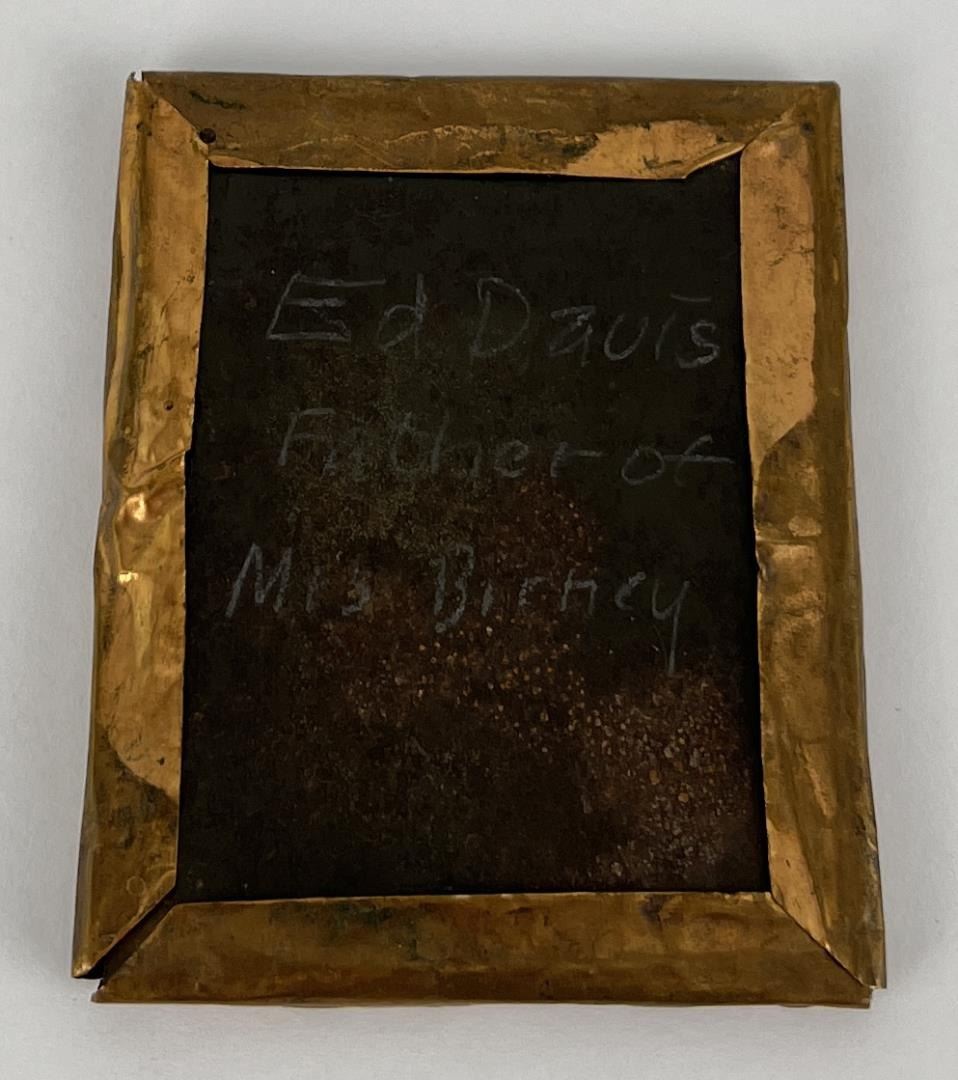Identified on the back as Ed Davis brother of Mrs Birney. 2 1/8" by 2 1/5". Edmund Jackson Davis (October 2, 1827 – February 24, 1883) was an American lawyer, soldier, and politician. Davis was a Southern Unionist and a general in the Union Army in the American Civil War. He also served as the 14th Governor of Texas from 1870 to 1874, during the Reconstruction era. Reviled by many Texans during and after the Civil War as a traitor for his open support for the North and his attempts to break up Texas into several Northern-controlled states, Davis is known for leasing prisoners to private corporations to alleviate state budget shortfalls.