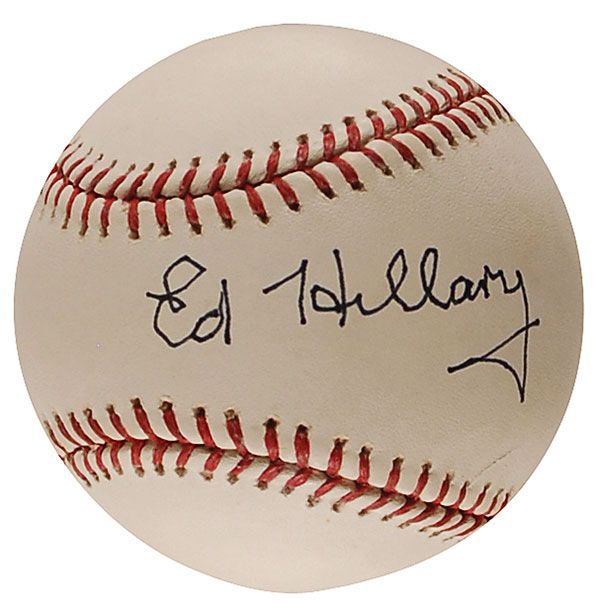 Official Rawlings Major League baseball signed in black ink on a side panel, “Ed Hillary.” In fine condition.