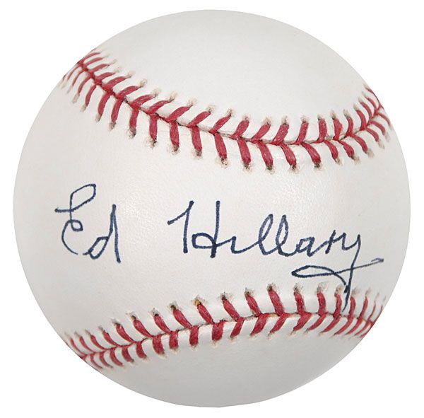 Official Rawlings Major League baseball signed in black ink on the sweet spot, “Ed Hillary.” In fine condition.
