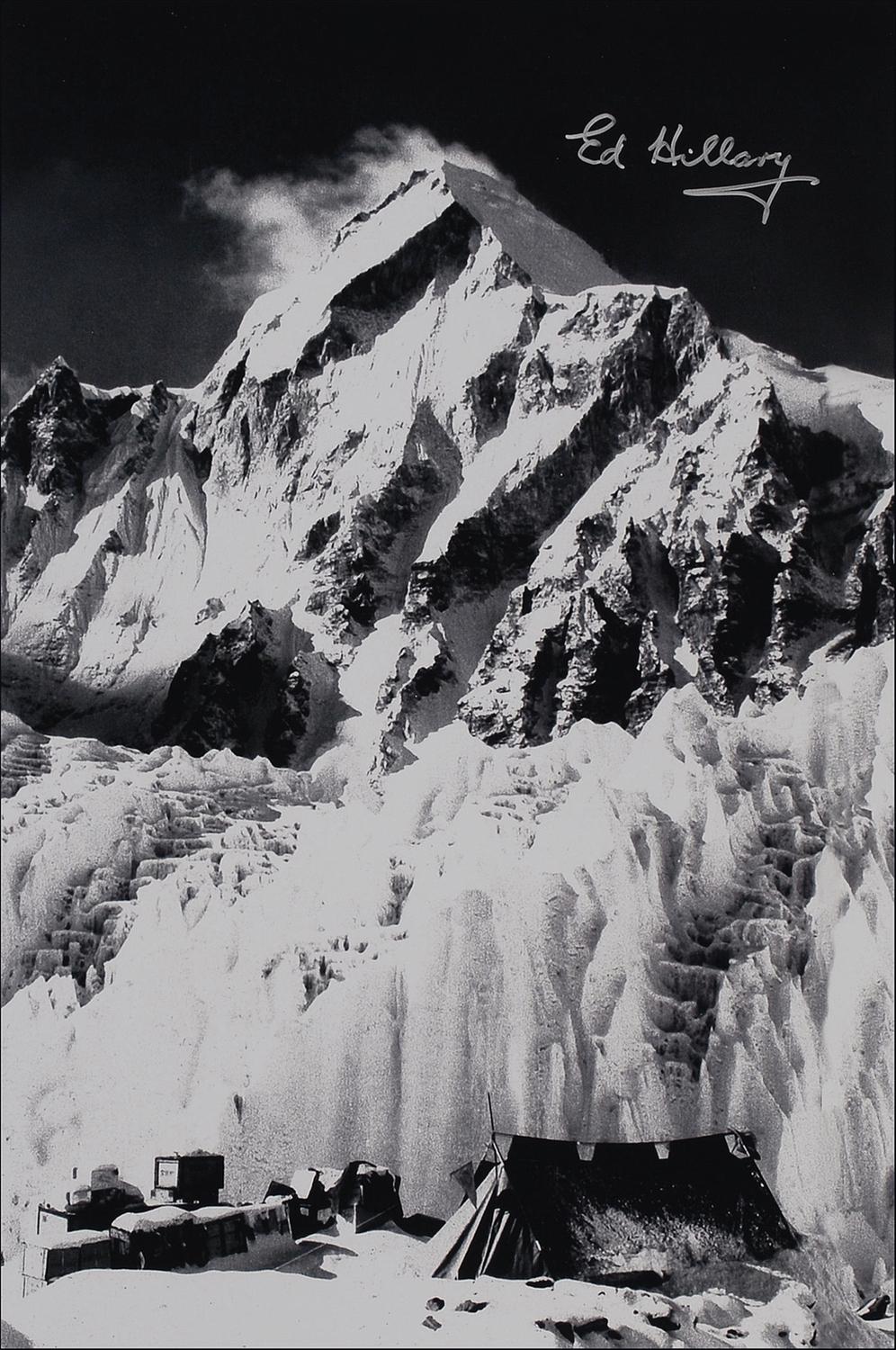 Imposing satin-finish 12 x 18 photo of the summit of Mount Everest, signed in silver ink. In very fine condition.