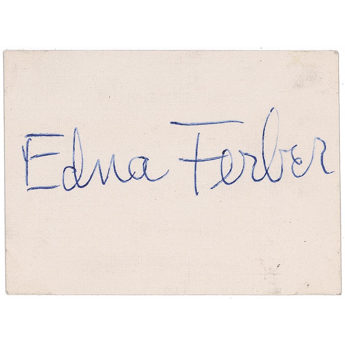 Pulitzer Prize–winning American author (1885–1968) of such classics as Show Boat, So Big, and Cimarron. Ballpoint signature, “Edna Ferber,” on an off-white 3 x 2.25 card. In fine condition, with a touch of trivial soiling.