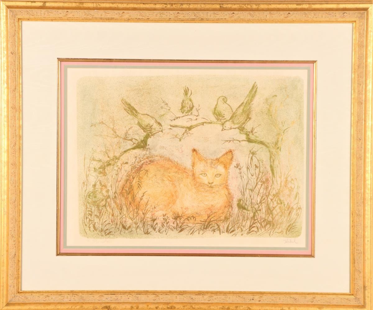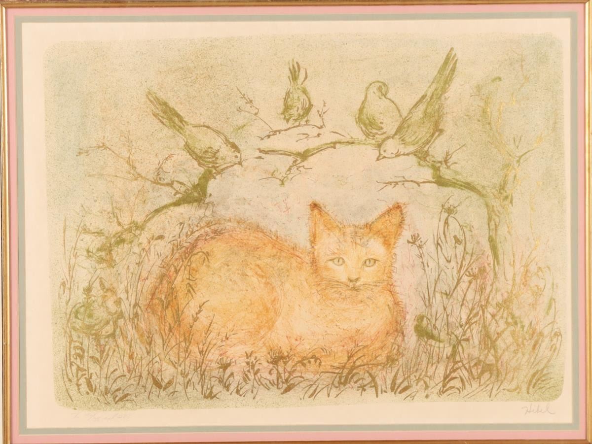 Titled "Pumbit the Cat" color lithograph, numbered 25/35, signed Hibel in margin.