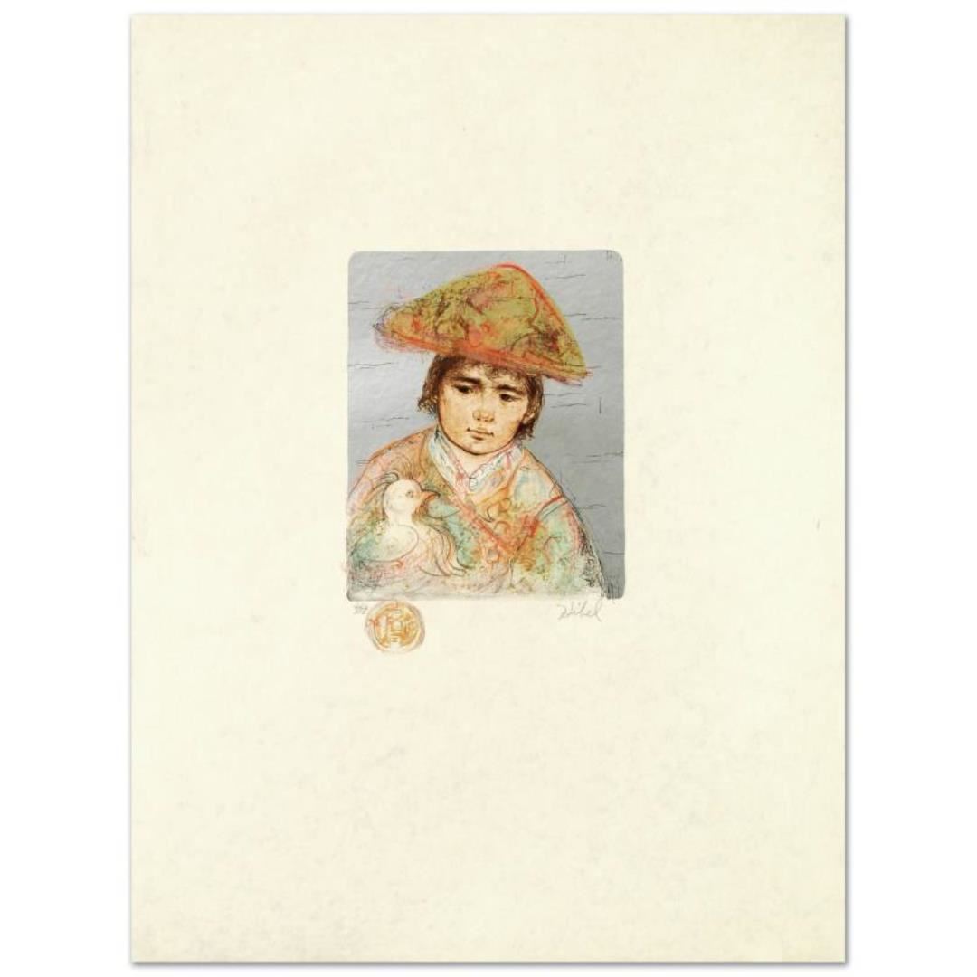 Edna Hibel (1917-2014) "Boy with Chicken" Limited Edition Lithograph on Rice Paper