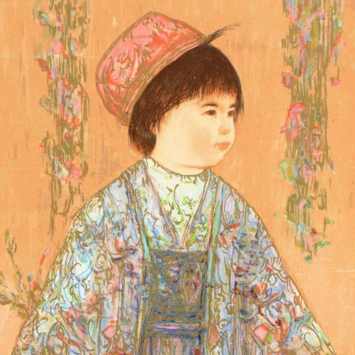 "Festival Day" is a limited edition lithograph on paper by Edna Hibel (1917-2014), numbered and hand signed by the artist. Includes Certificate of Authenticity. Measures approx. 14.5" x 20" (border), 10" x 15.5" (image). Reference #: 228672.