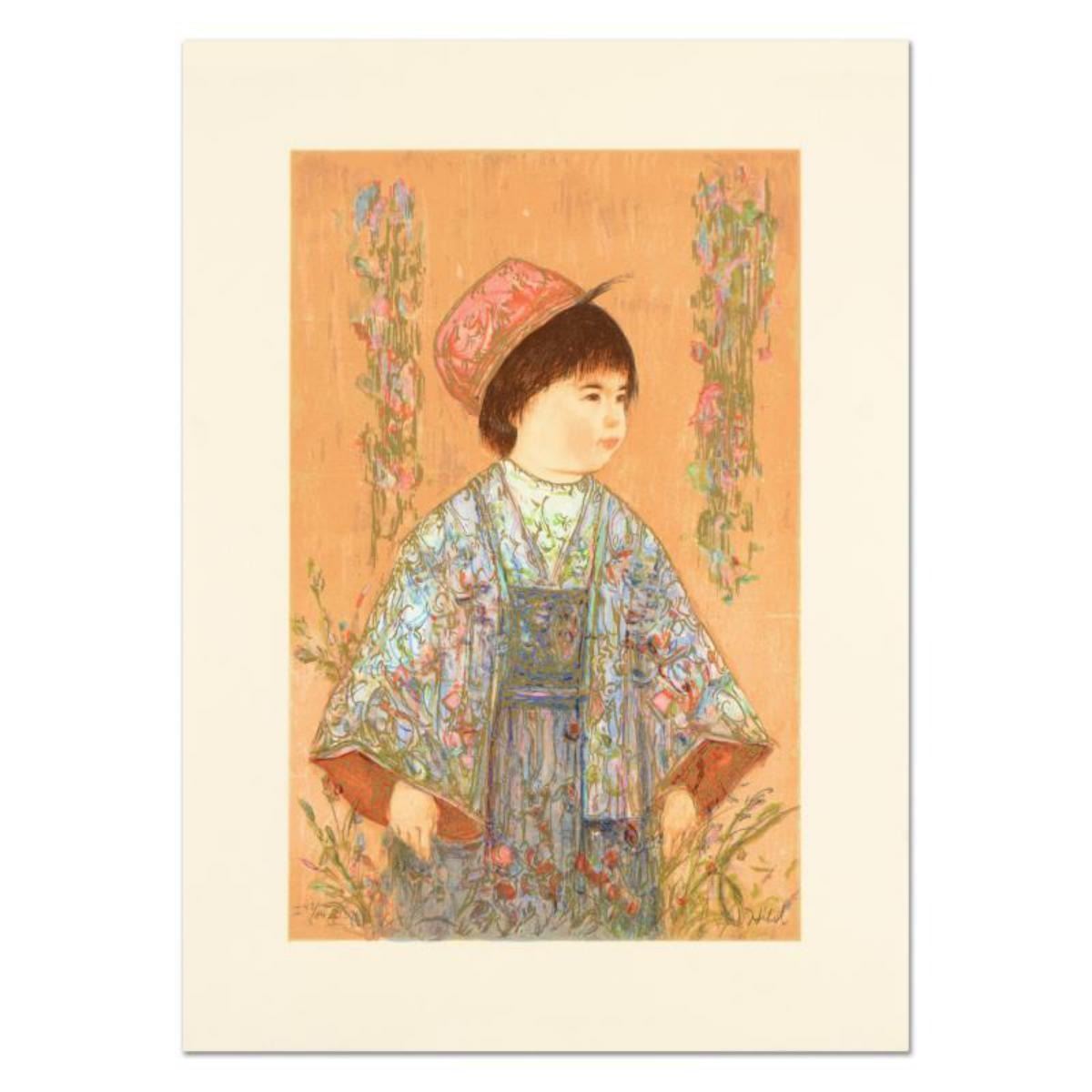 "Festival Day" is a limited edition lithograph on paper by Edna Hibel (1917-2014), numbered and hand signed by the artist. Includes Certificate of Authenticity. Measures approx. 14.5" x 20" (border), 10" x 15.5" (image). Reference #: 228672.