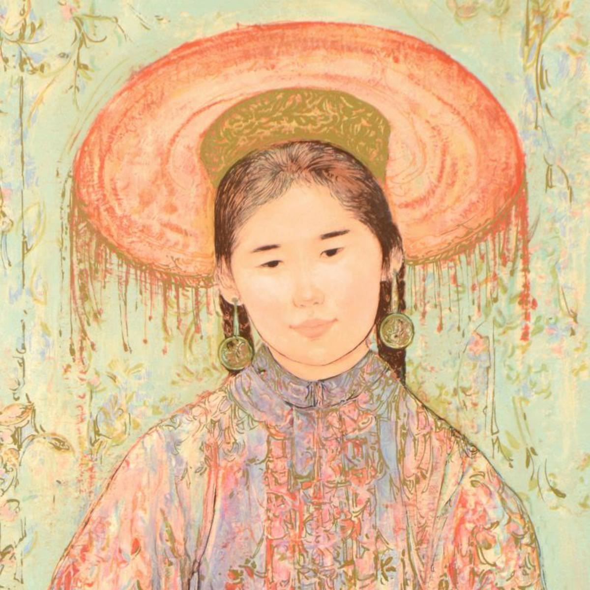"Fine China" is a limited edition lithograph on paper by Edna Hibel (1917-2014), numbered and hand signed by the artist. Includes Certificate of Authenticity. Measures approx. 31.5" x 47" (border), 24.5" x 41.5" (image). Reference #: 228025.