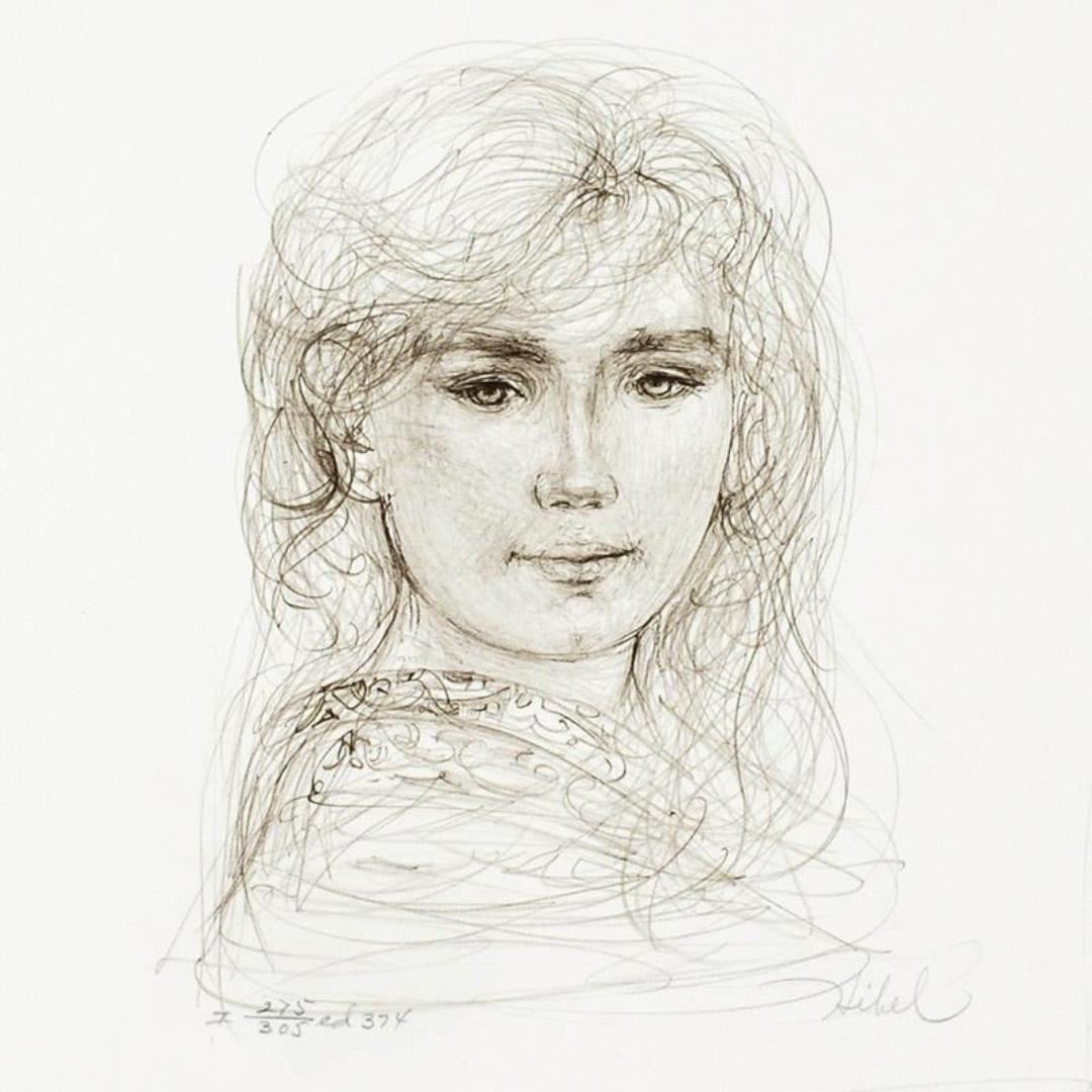 Wild lines and muted colors make Edna Hibel's art stand out in any room. "Inga" is a limited edition lithograph on paper, numbered and hand signed by Hibel. Includes Certificate of Authenticity! Measures approx. 16" x 22.5" (with border), 9" x 10" (image).