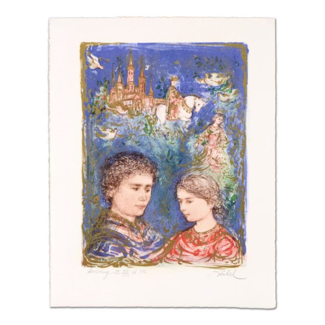 "The Family Suite Edition II" is a 4-piece set of limited edition lithographs on paper celebrating the beauty of family in all of its four stages: "Sowing - The Promise", "Ripening - The Fulfillment", "Harvesting - The Future", and "Through the Generations". Each piece is numbered and hand signed by Edna Hibel (1917-2014). Includes Certificate of Authenticity. Measures approx. 14" x 18" (box); 12" x 16" (each lithograph).