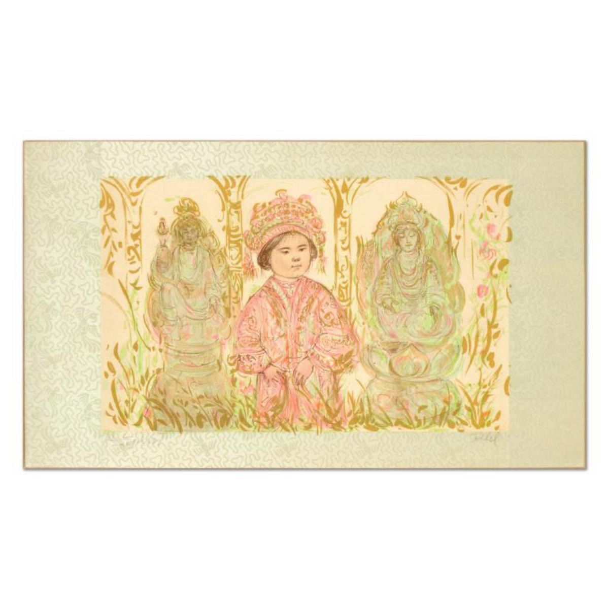 Edna Hibel (1917-2014), "Willie and Two Quan Yins" Limited Edition Lithograph, Numbered and Hand Sig