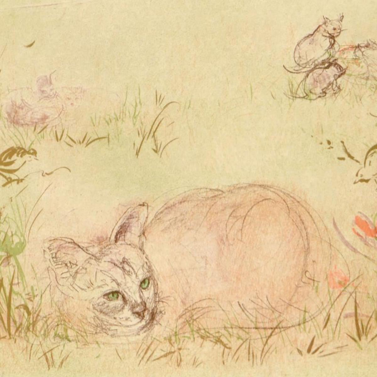 Edna Hibel (1917-2014), "Worcester Cat" Limited Edition Lithograph on Rice Paper, Numbered and Hand