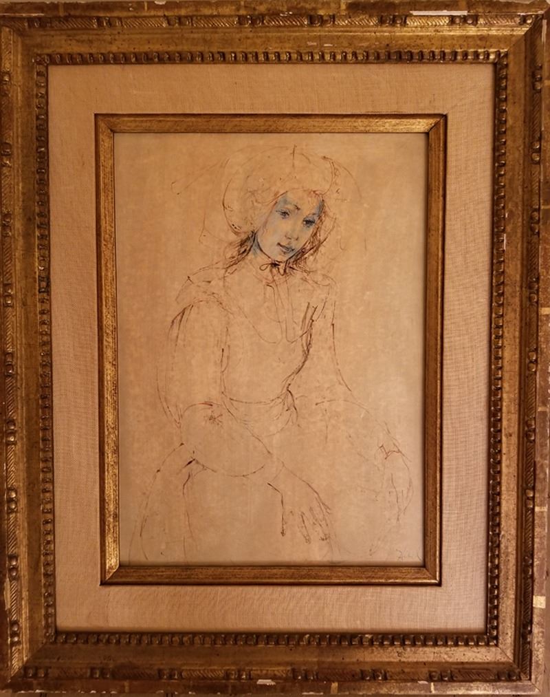 Edna Hibel, Portrait of a Woman, Ink and Acrylic on Board