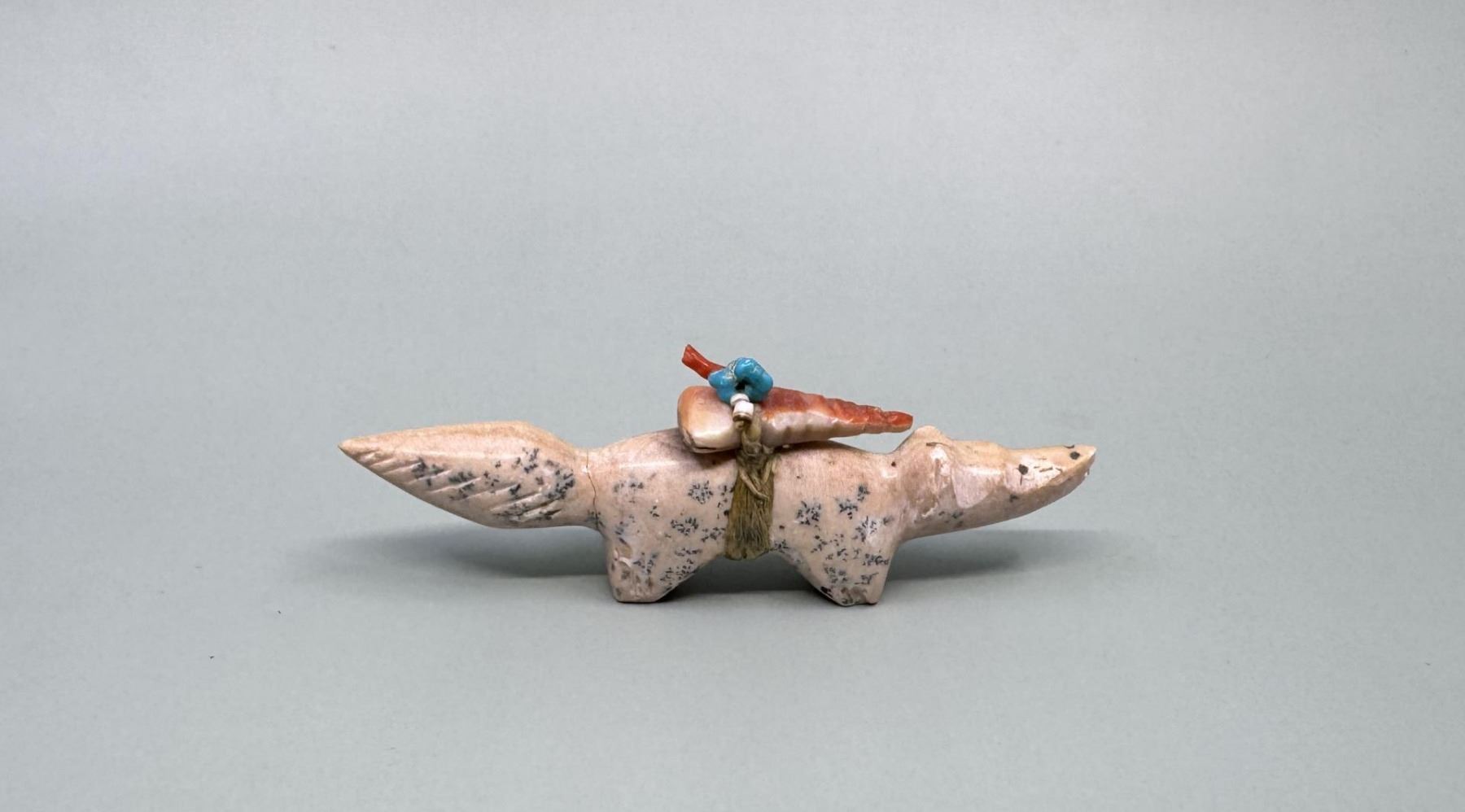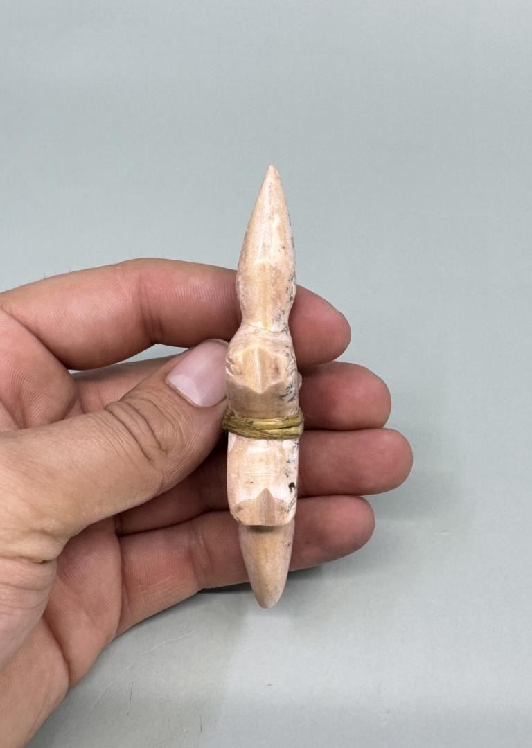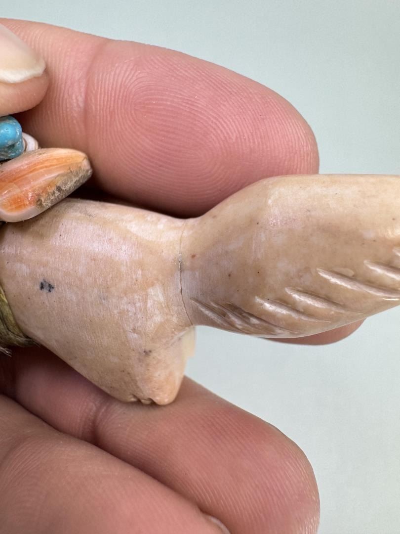 3 3/4" long by 1 1/4" wide by 5/8" tall. Tail has been repaired.