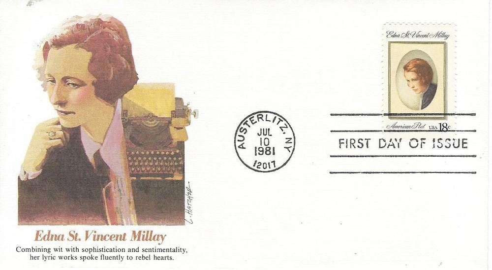 Edna St. Vincent Millay USA FDC, Austerlitz NY - Jul. 10 1981