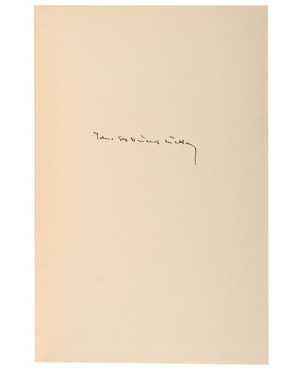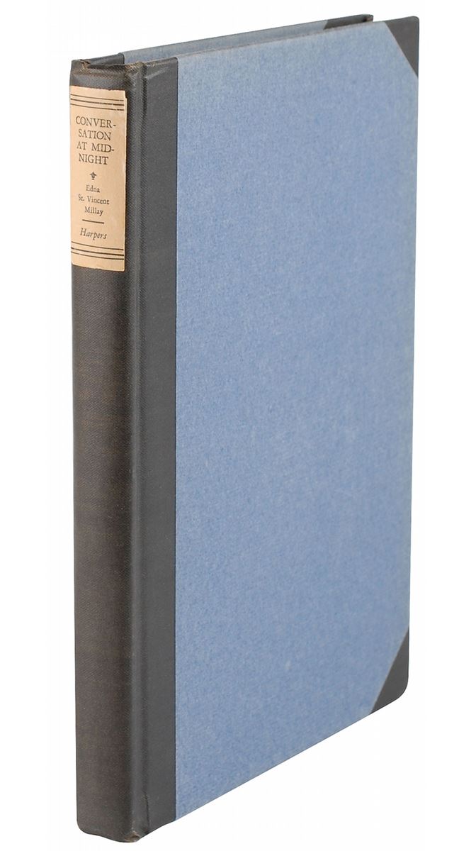 Signed book: Conversation at Midnight. Later printing. NY: Harper & Brothers, 1937. Hardcover, 5.75 x 8.25, 126 pages. Signed on the first free end page in black ink. In fine condition, with a pair of newspaper clippings individually affixed to the back pastedown and the reverse of the last free end page with pieces of toned tape.