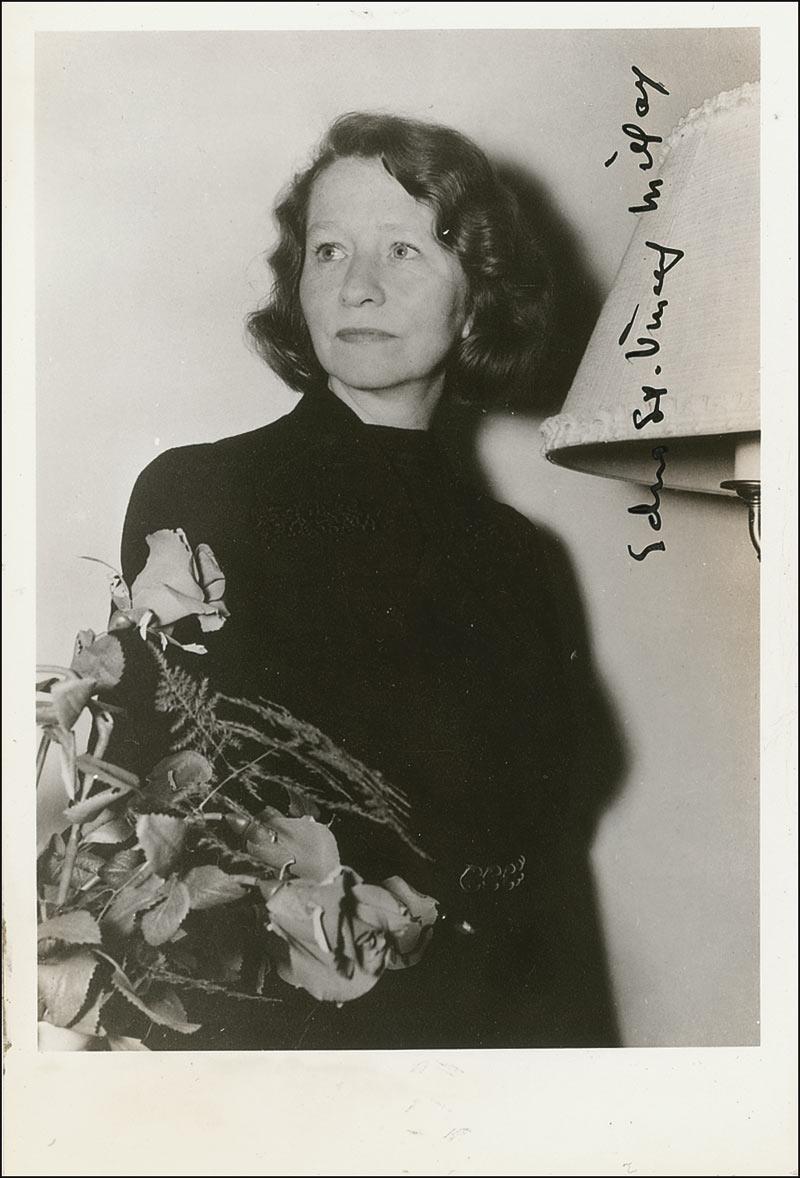 Vintage glossy 4 x 6 photo, signed vertically in black ink. In fine condition, with some scattered light surface marks and impressions. RRAuction COA.